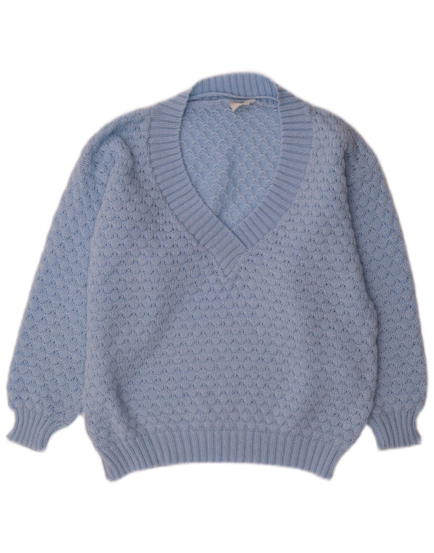 C & A Womens Oversized V-Neck Jumper Sweater UK 14 Medium Blue Acrylic