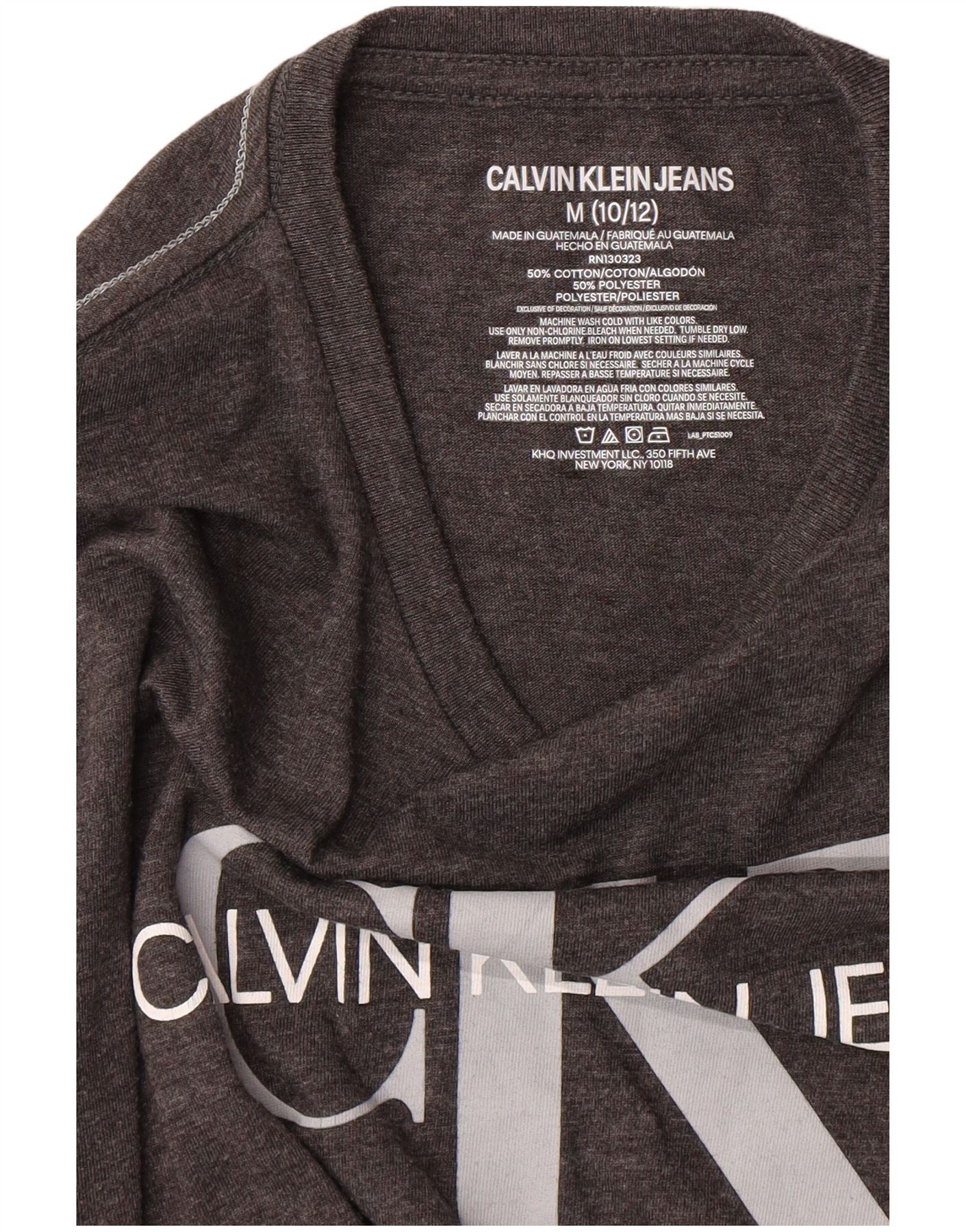 CALVIN KLEIN JEANS Boys Graphic T-Shirt Top 10-11 Years Medium Grey Cotton