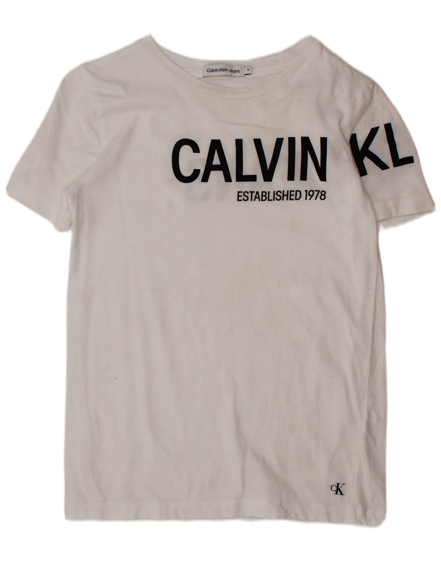 CALVIN KLEIN JEANS Boys Graphic T-Shirt Top 9-10 Years White