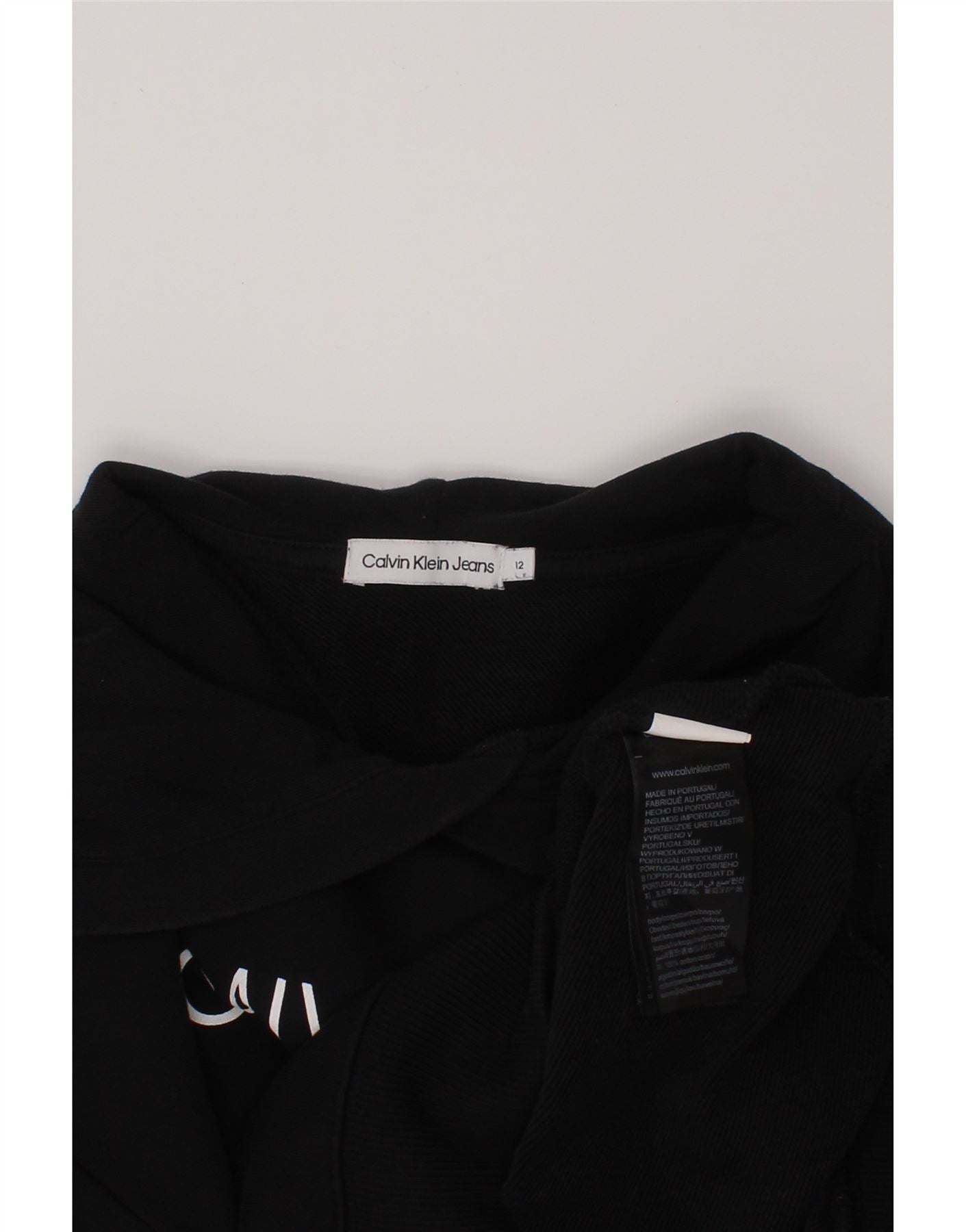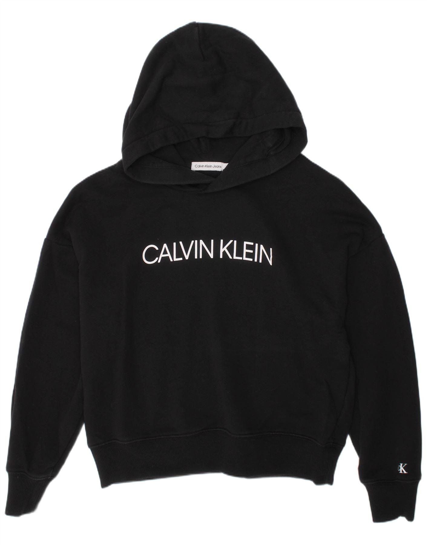 CALVIN KLEIN JEANS Girls Crop Graphic Hoodie Jumper 11-12 Years Black