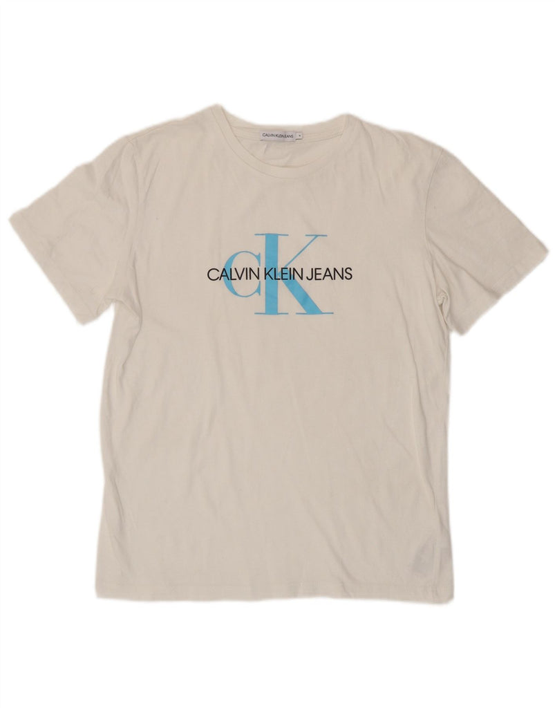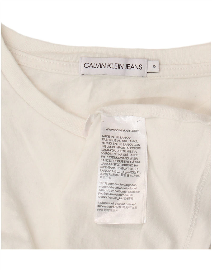 CALVIN KLEIN JEANS Girls Graphic T-Shirt Top 15-16 Years White Cotton
