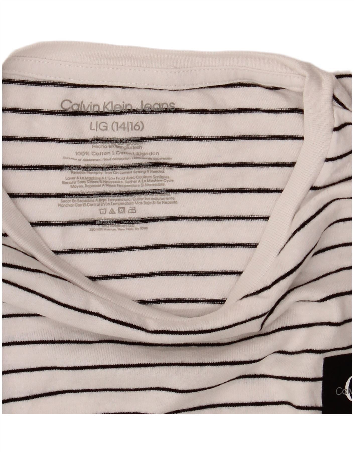 CALVIN KLEIN JEANS Girls T-Shirt Top 14-15 Years Large White Striped