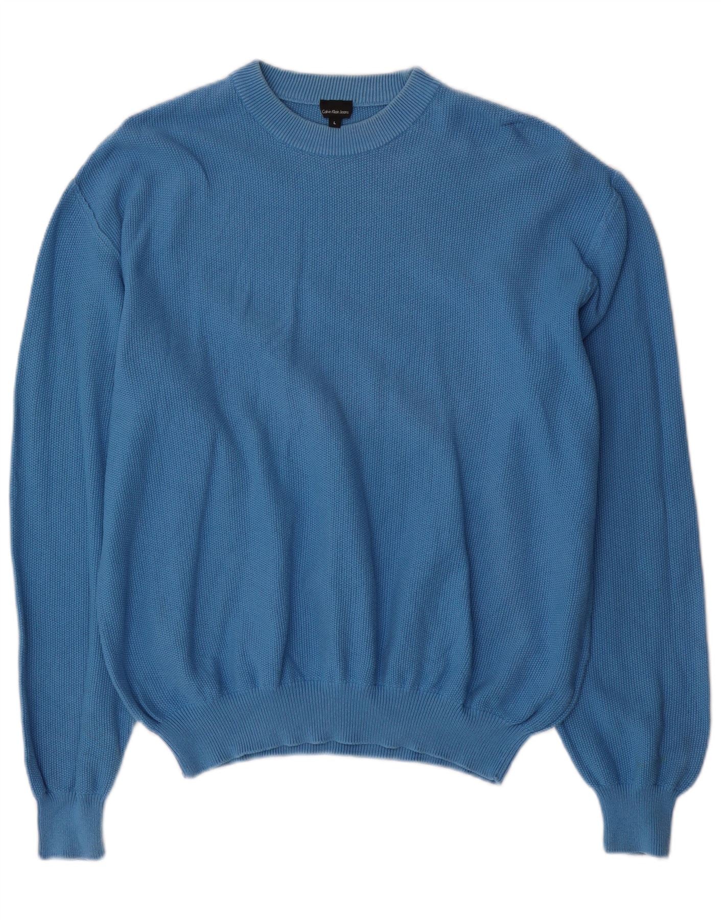 CALVIN KLEIN JEANS Mens Crew Neck Jumper Sweater Large Blue Cotton