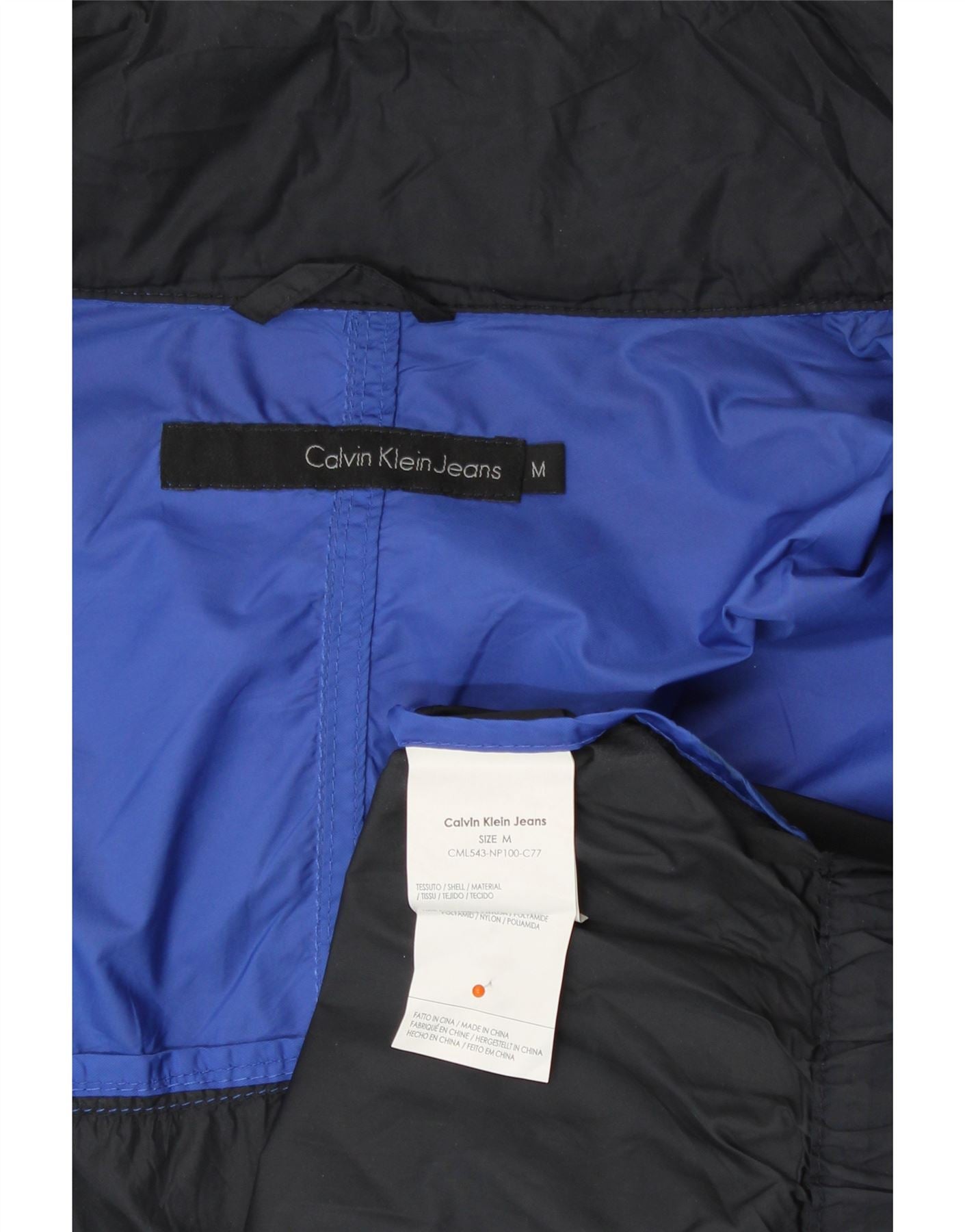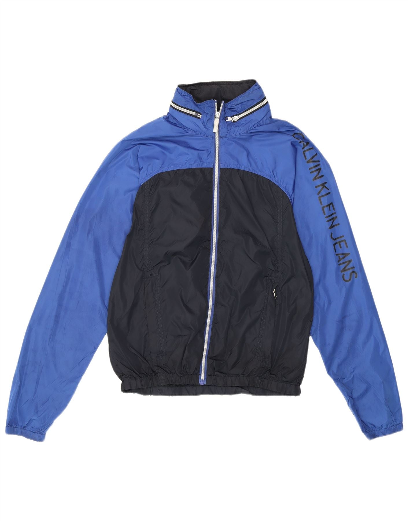 CALVIN KLEIN JEANS Mens Graphic Rain Jacket UK 38 Medium Blue Colourblock