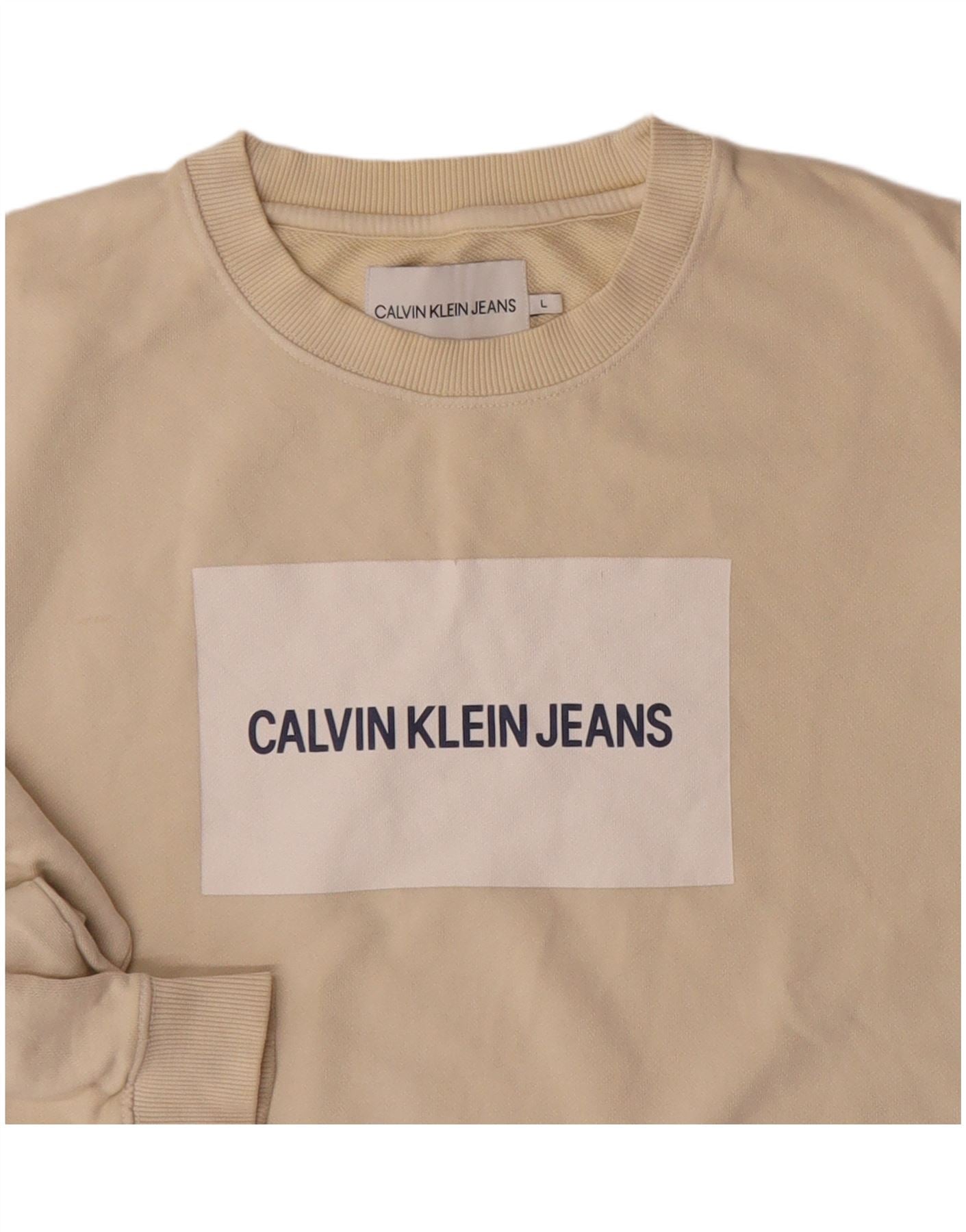 Calvin Klein Jeans Mens Graphic Sweatshirt Jumper Large Beige Cotton