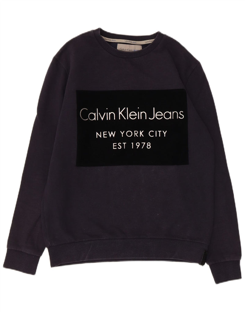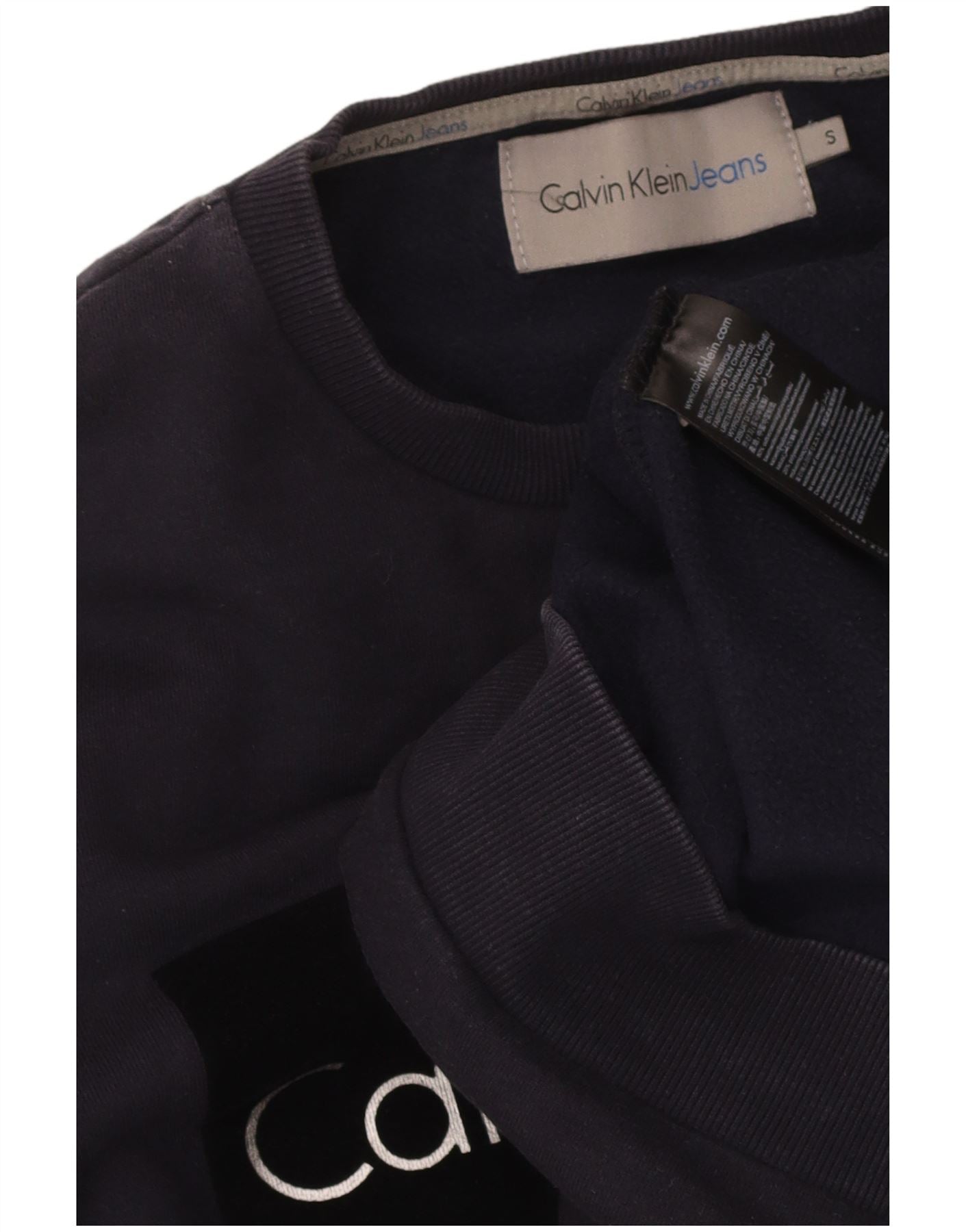 CALVIN KLEIN JEANS Mens Graphic Sweatshirt Jumper Small Navy Blue Cotton
