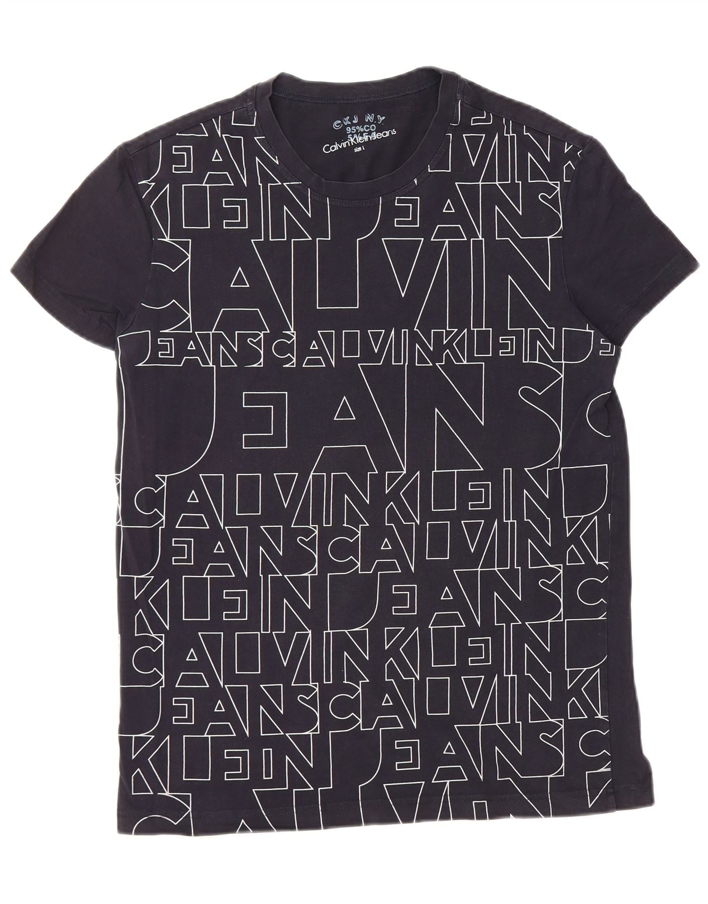 CALVIN KLEIN JEANS Mens Graphic T-Shirt Top Large Navy Blue Cotton