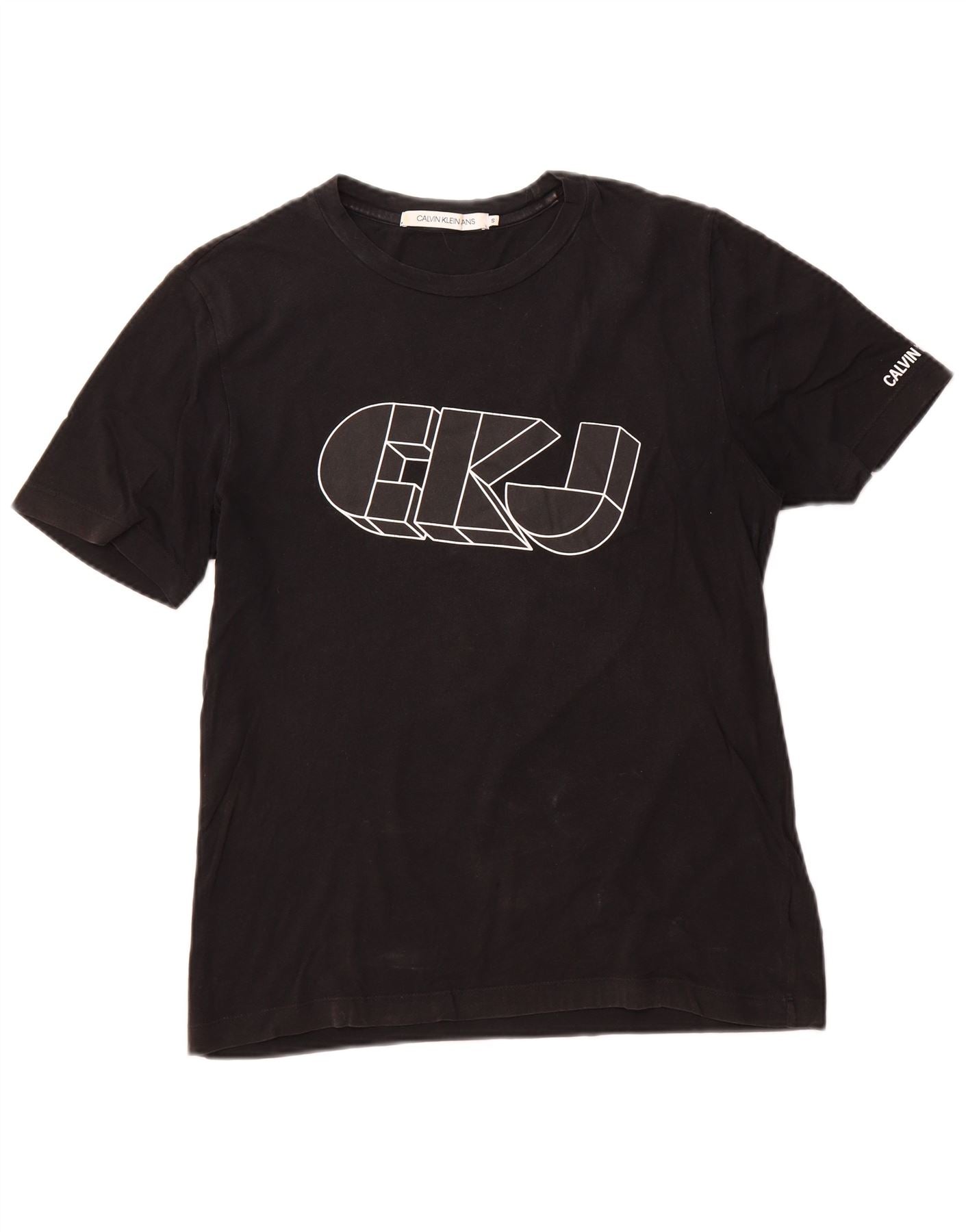 CALVIN KLEIN JEANS Mens Graphic T-Shirt Top Small Black Cotton