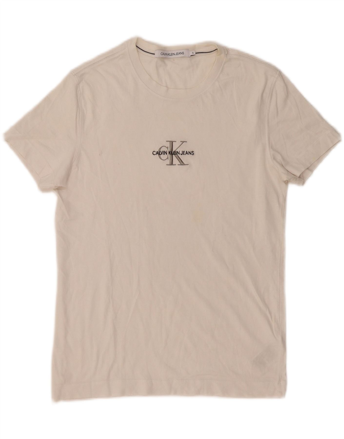 CALVIN KLEIN JEANS Mens Graphic T-Shirt Top Small White Cotton