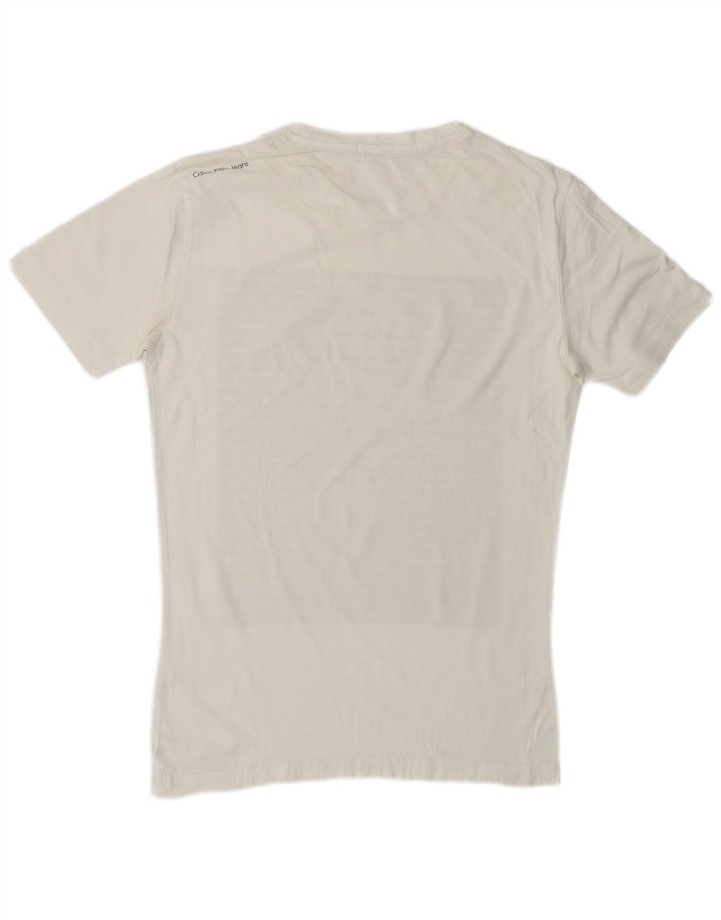 CALVIN KLEIN JEANS Mens Graphic T-Shirt Top Small White Cotton