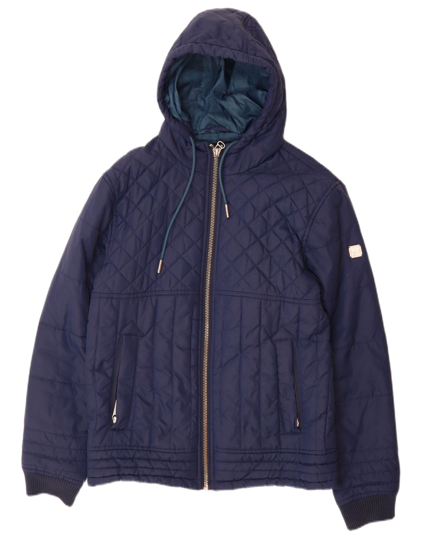 CALVIN KLEIN JEANS Mens Hooded Quilted Jacket UK 36 Small Navy Blue Nylon