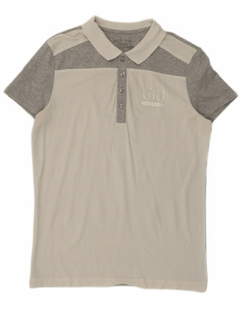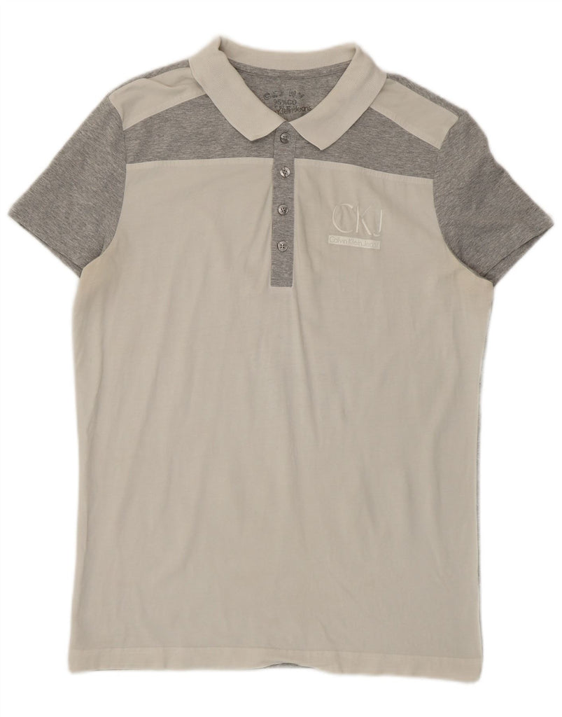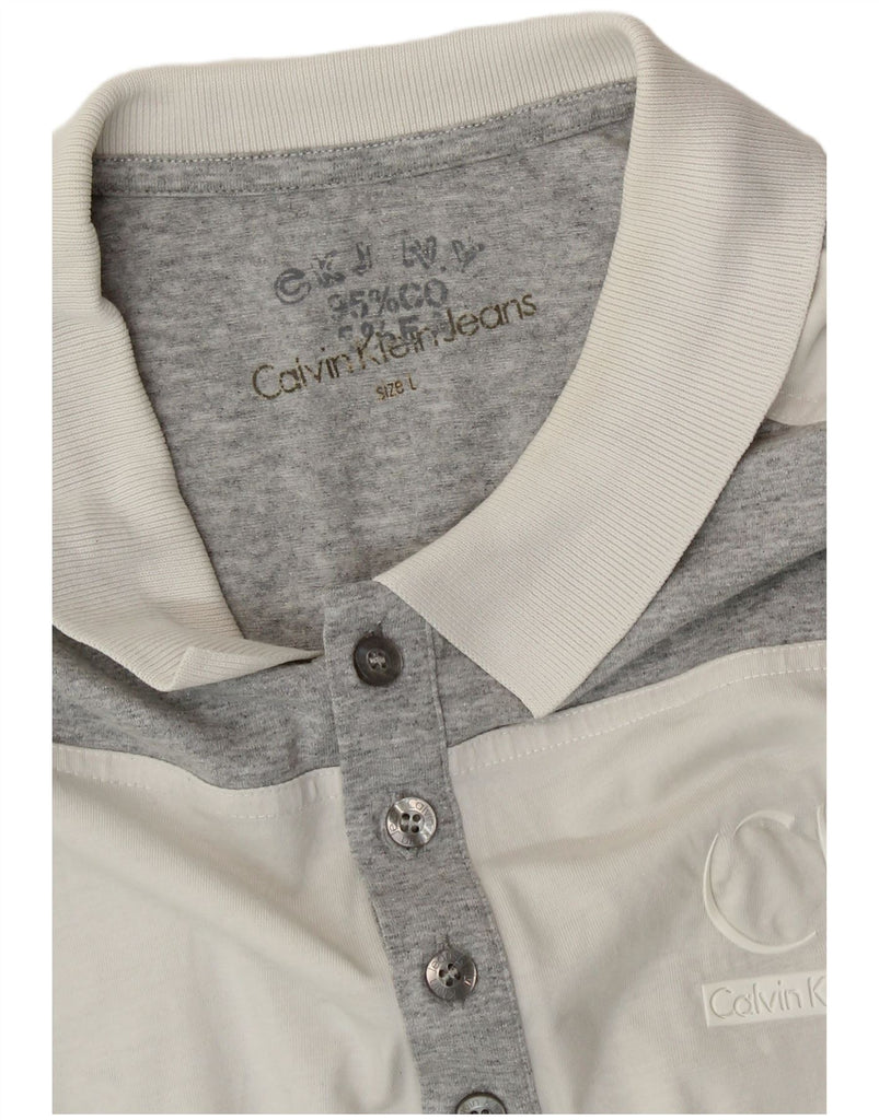 CALVIN KLEIN JEANS Mens Polo Shirt Large Grey Colourblock