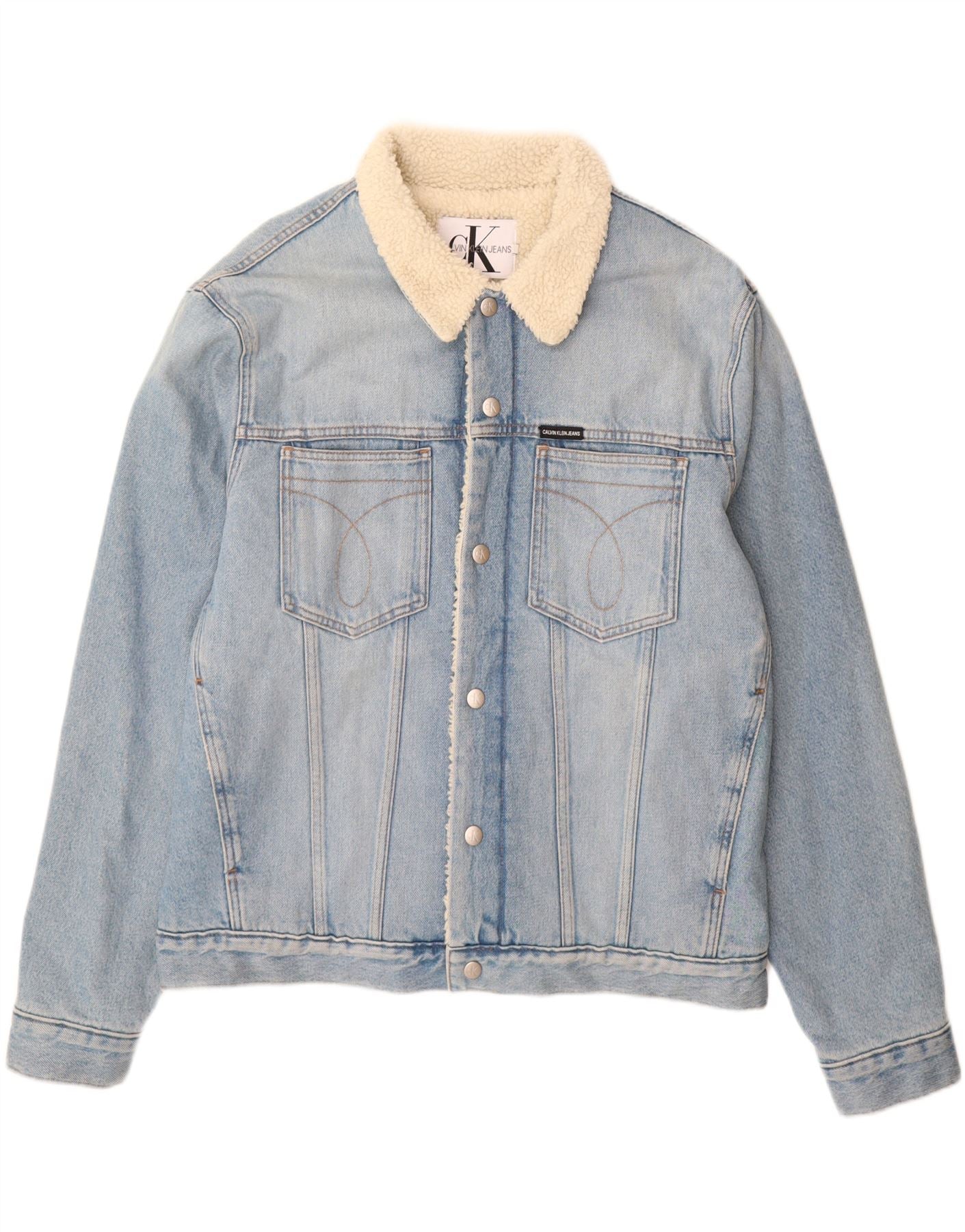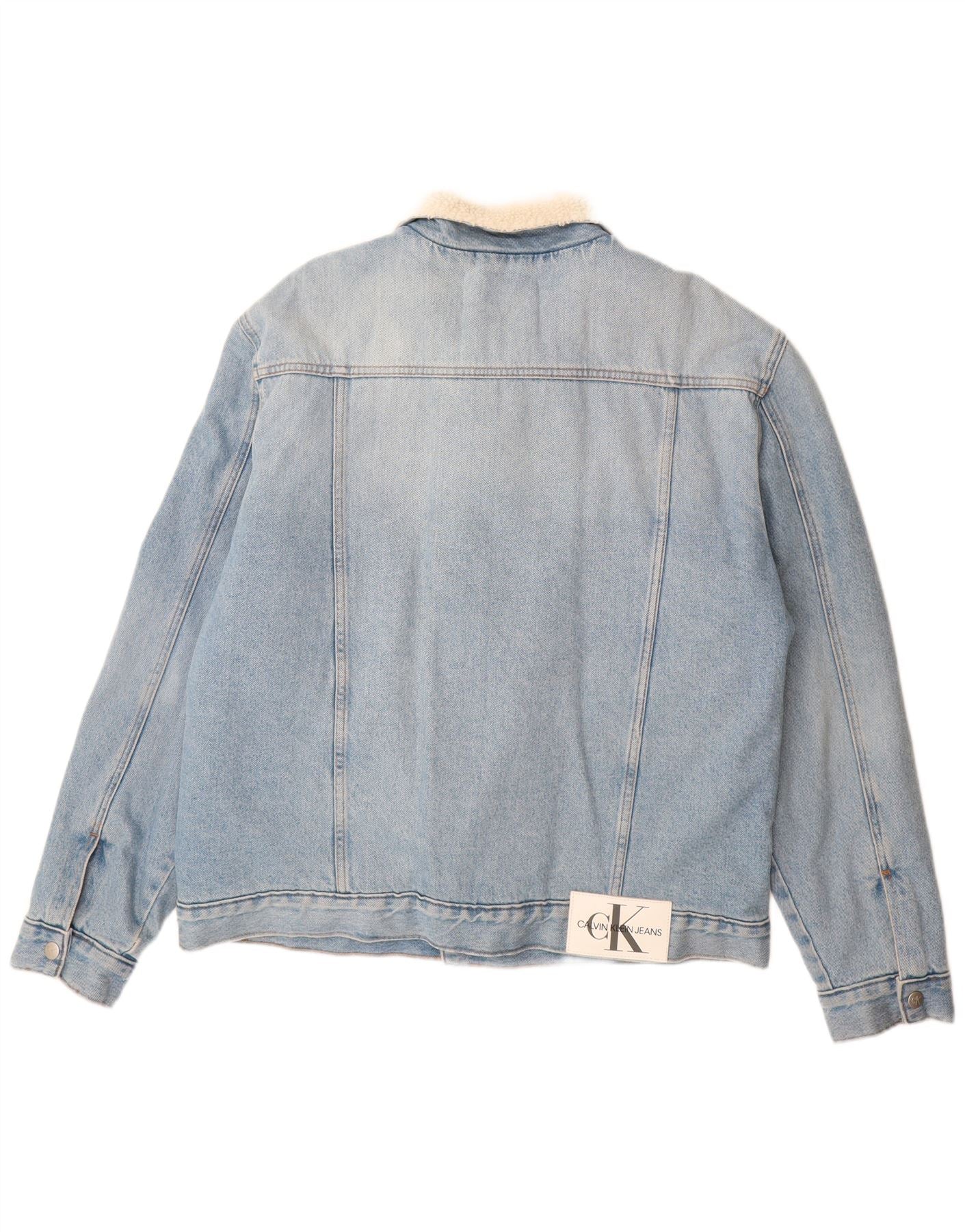 CALVIN KLEIN JEANS Mens Sherpa Denim Jacket UK 42 XL Blue Cotton