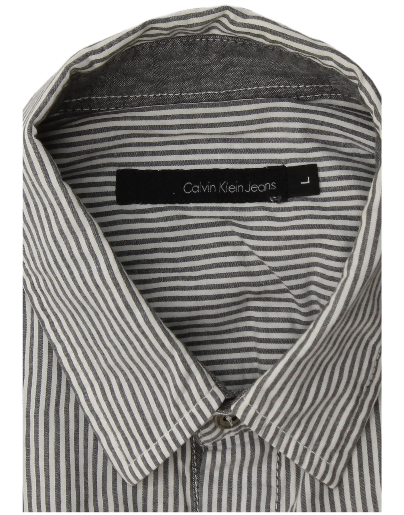 CALVIN KLEIN JEANS Mens Short Sleeve Shirt Large Grey Striped