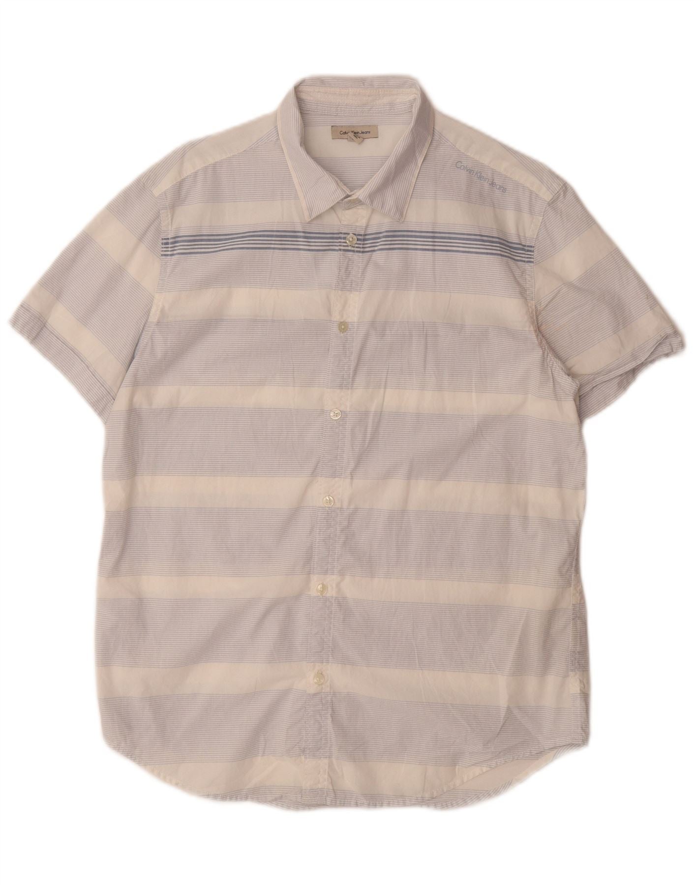 CALVIN KLEIN JEANS Mens Short Sleeve Shirt Medium Blue Striped Cotton