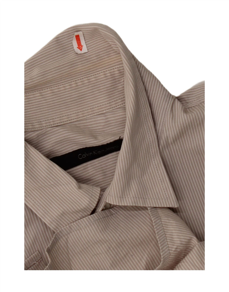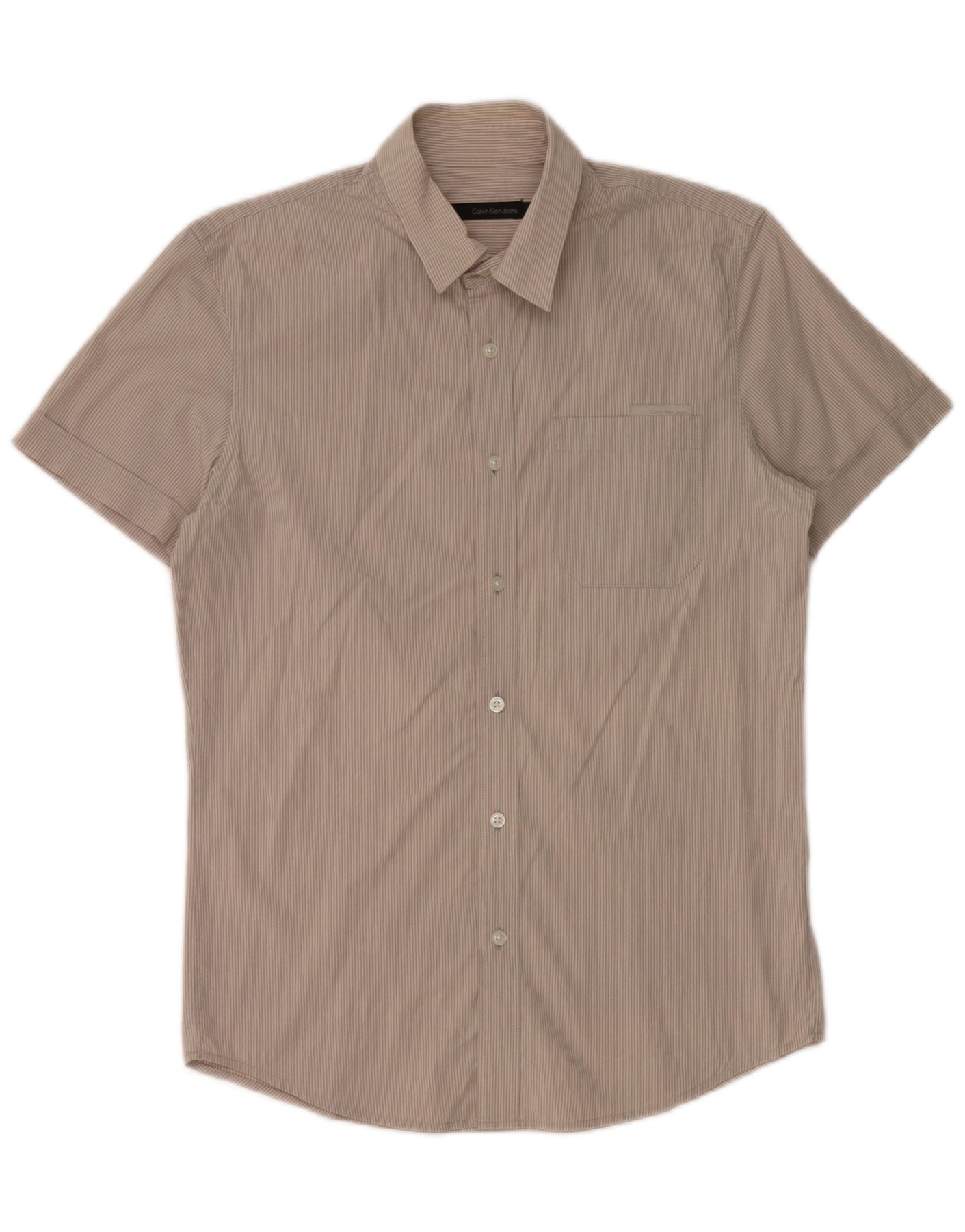 CALVIN KLEIN JEANS Mens Short Sleeve Shirt Medium Grey Pinstripe Cotton
