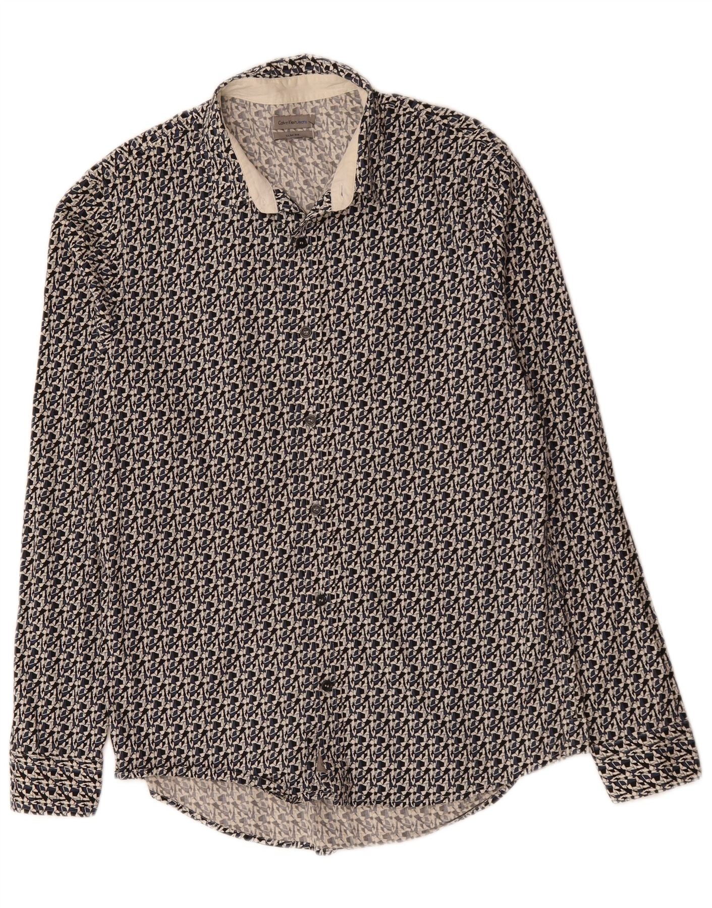 CALVIN KLEIN JEANS Mens Slim Fit Shirt Medium Black Geometric Cotton