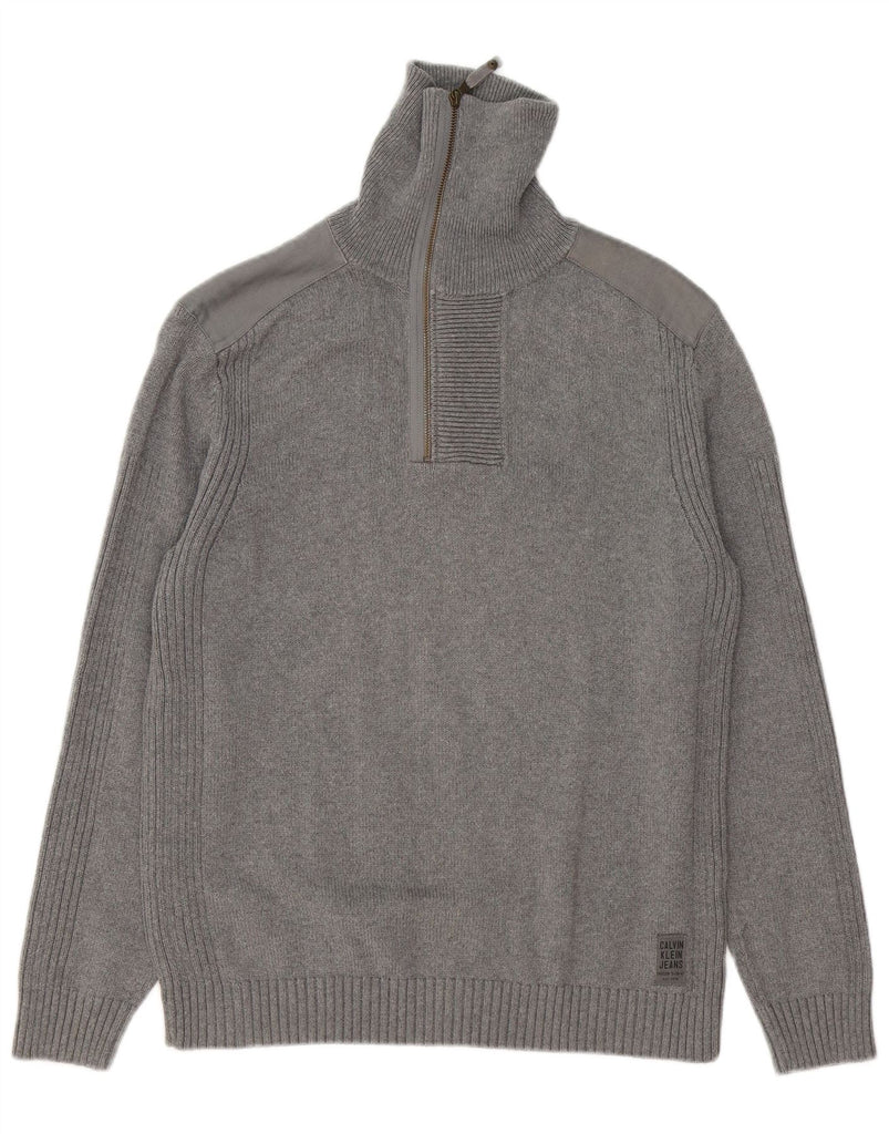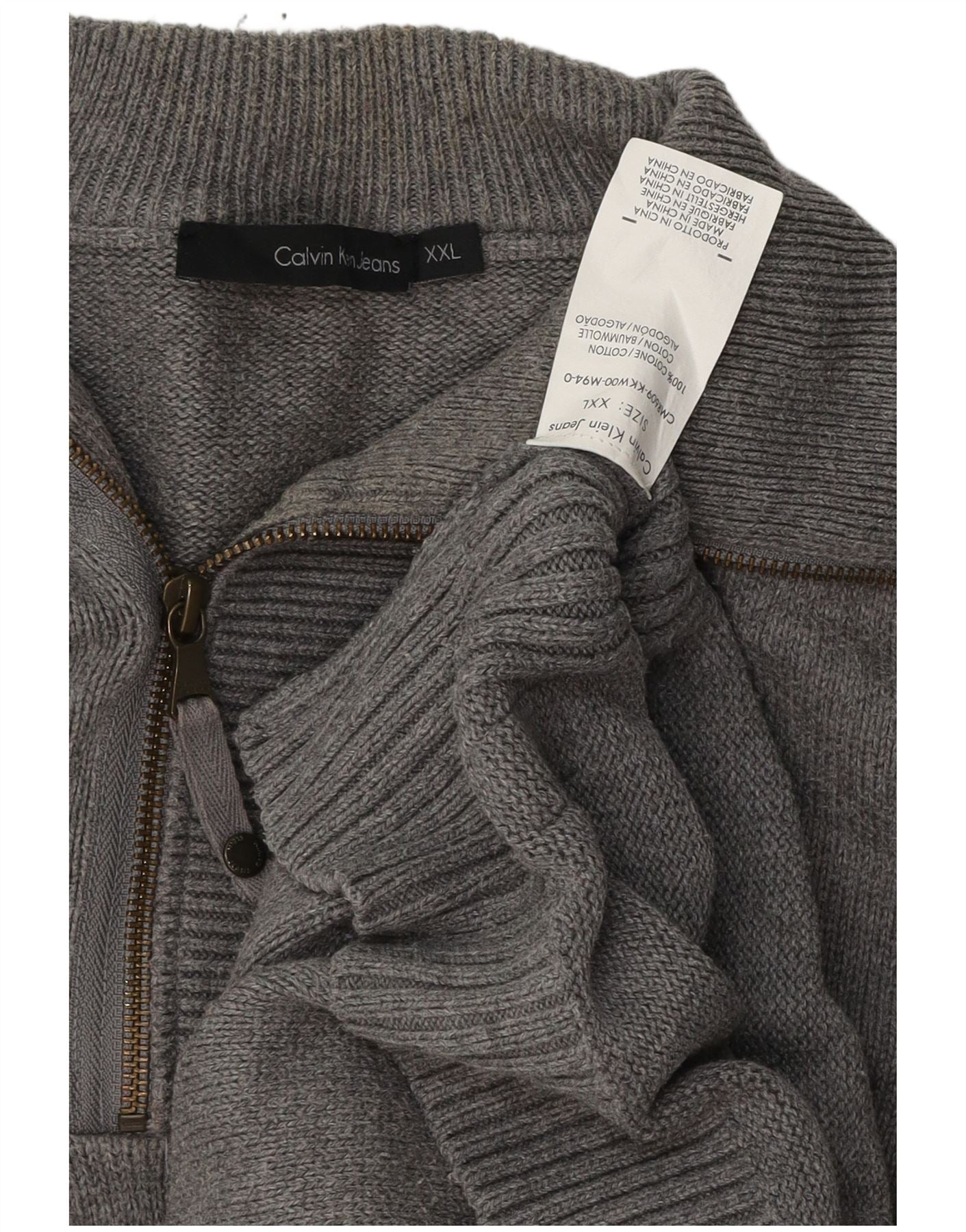 CALVIN KLEIN JEANS Mens Zip Neck Jumper Sweater 2XL Grey Cotton