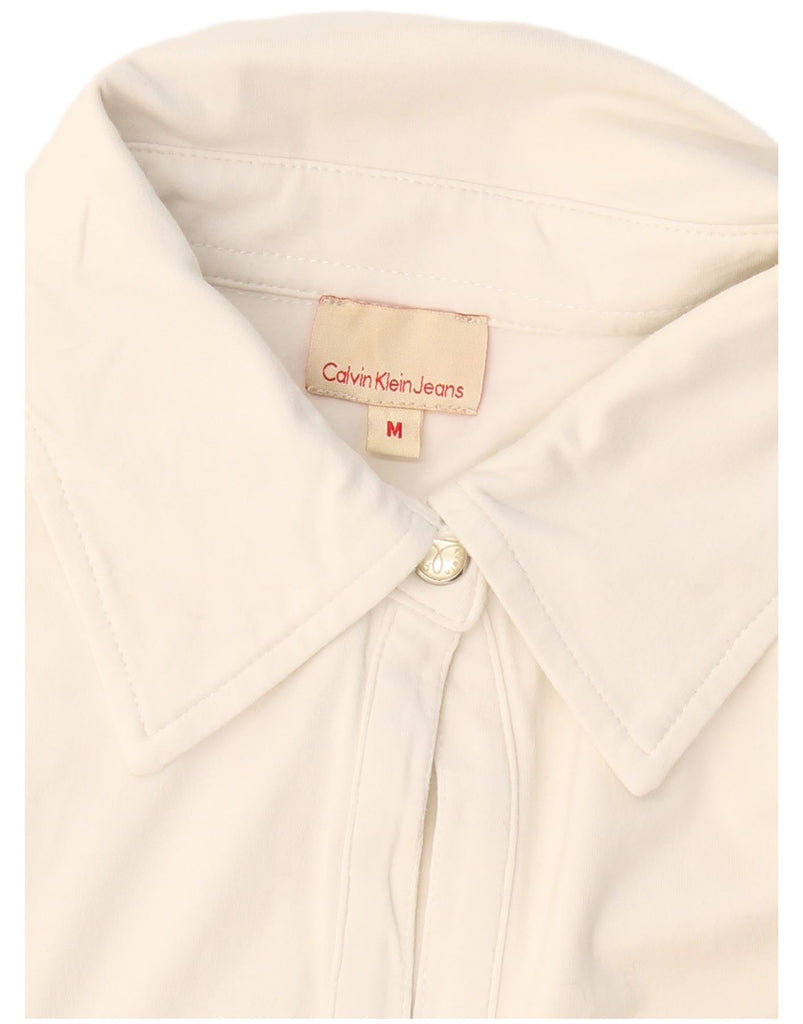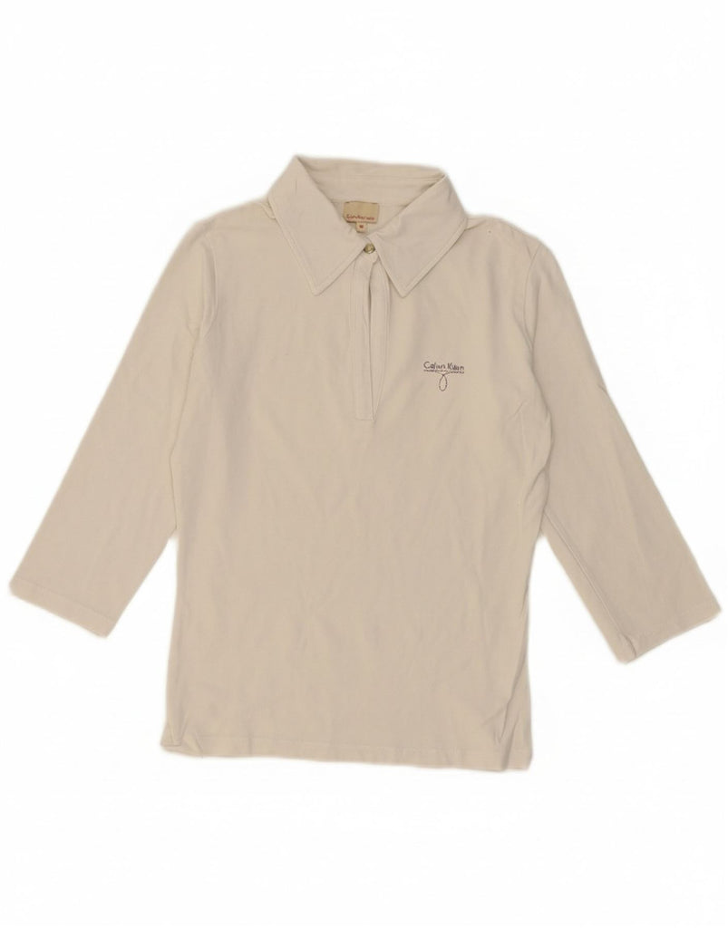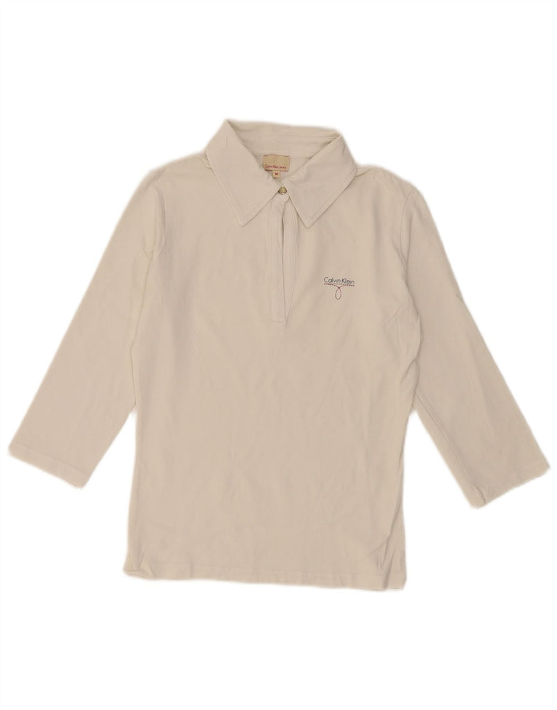 CALVIN KLEIN JEANS Womens 3/4 Sleeve Polo Shirt UK 12 Medium White