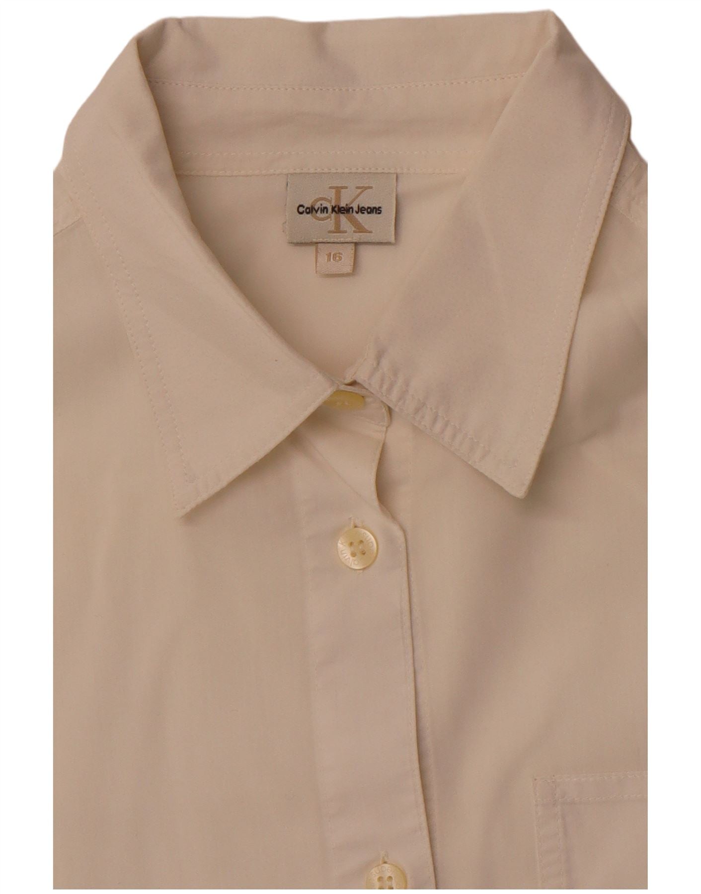 CALVIN KLEIN JEANS Womens 3/4 Sleeve Shirt UK 16 Large Off White