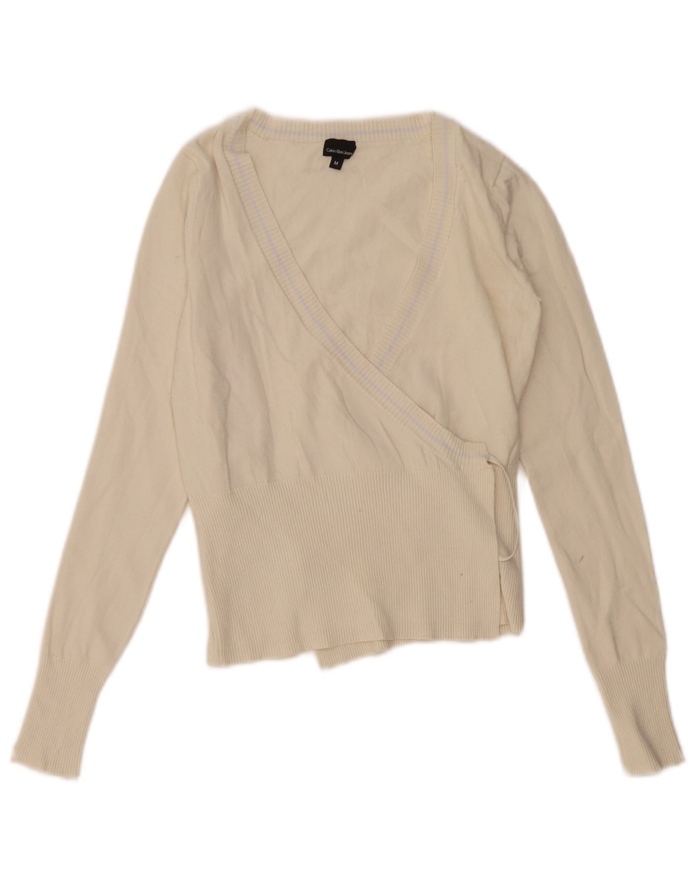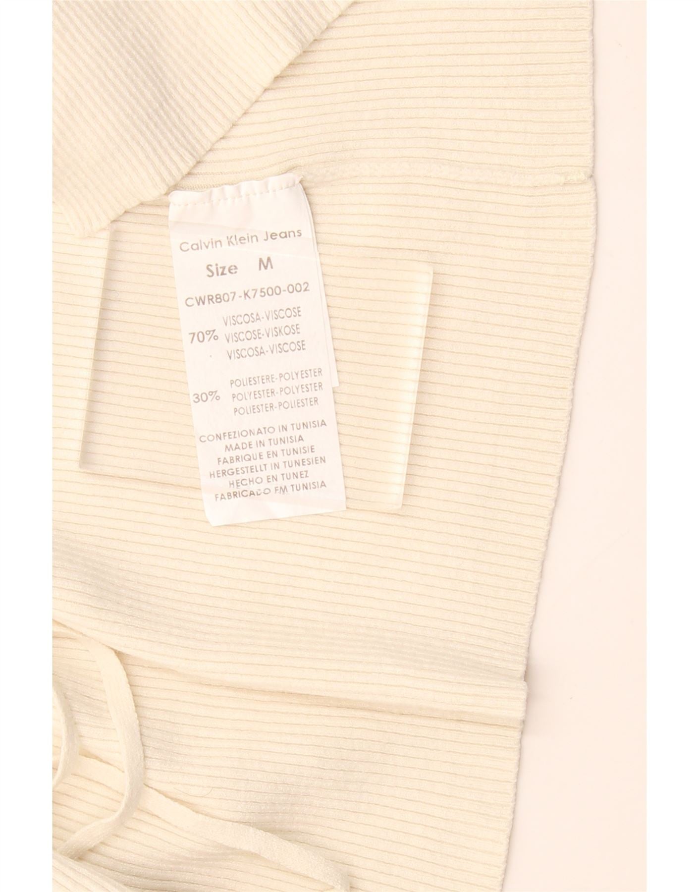 CALVIN KLEIN JEANS Womens Crop Cardigan Sweater UK 12 Medium White Viscose