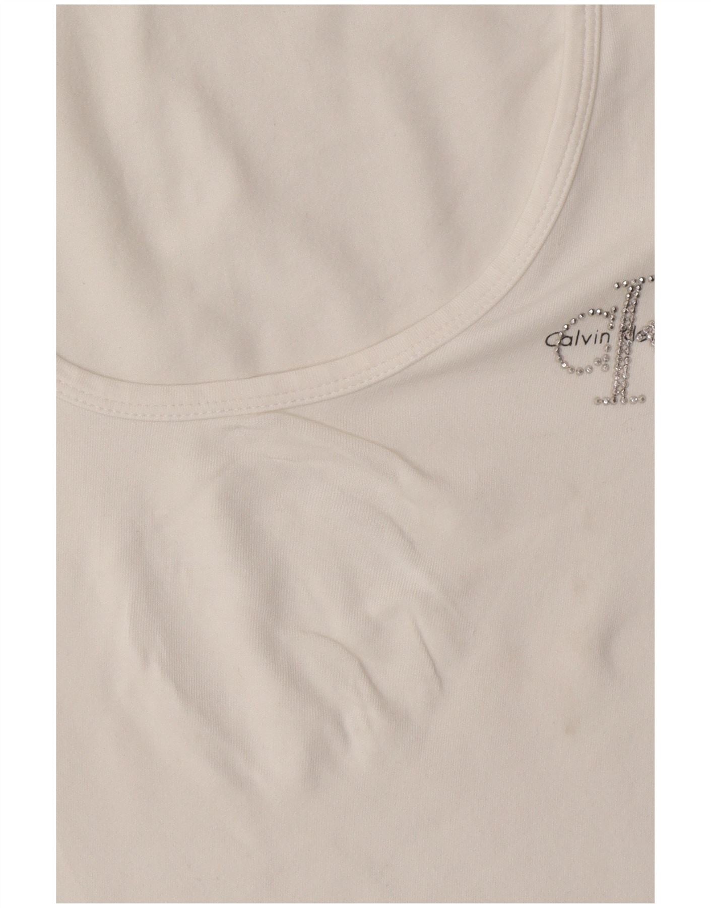 CALVIN KLEIN JEANS Womens Crop Graphic T-Shirt Top UK 14 Large White