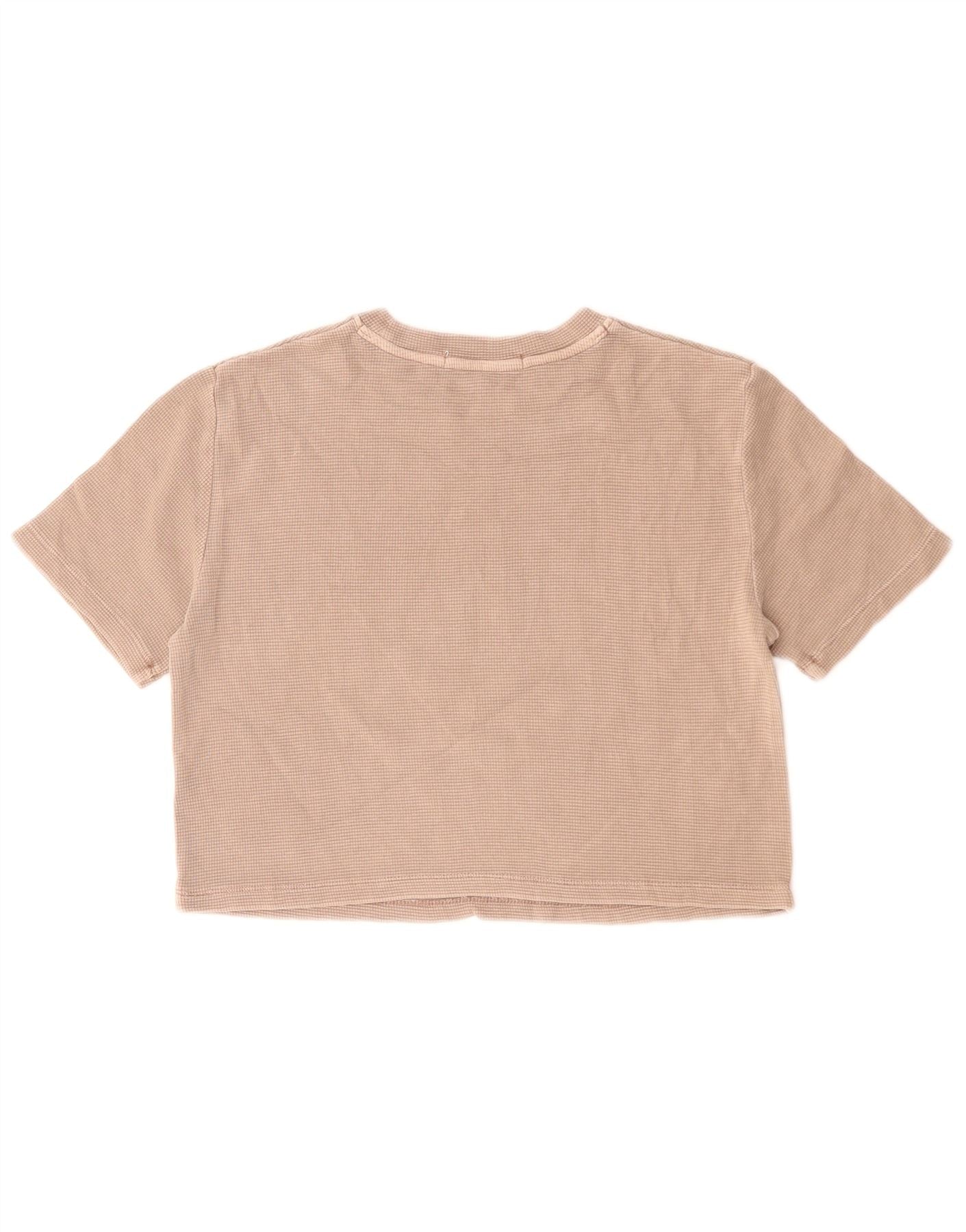 CALVIN KLEIN JEANS Womens Crop T-Shirt Top UK 10 Small Beige Cotton