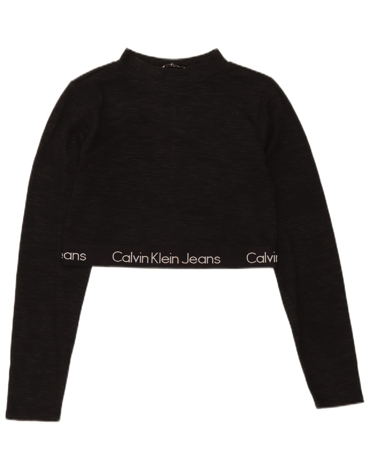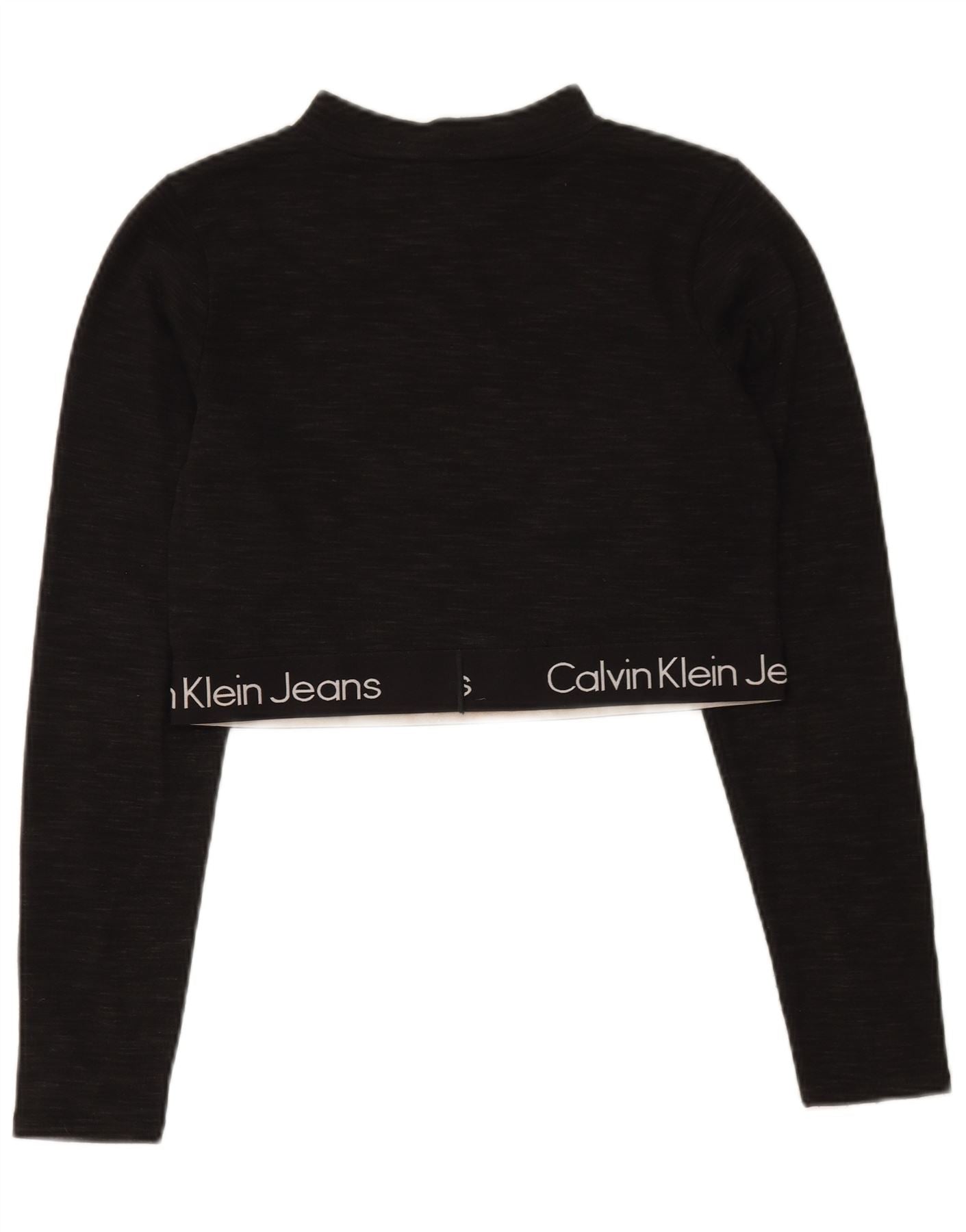 CALVIN KLEIN JEANS Womens Graphic Long Sleeve Crop Top UK 8 Small Black