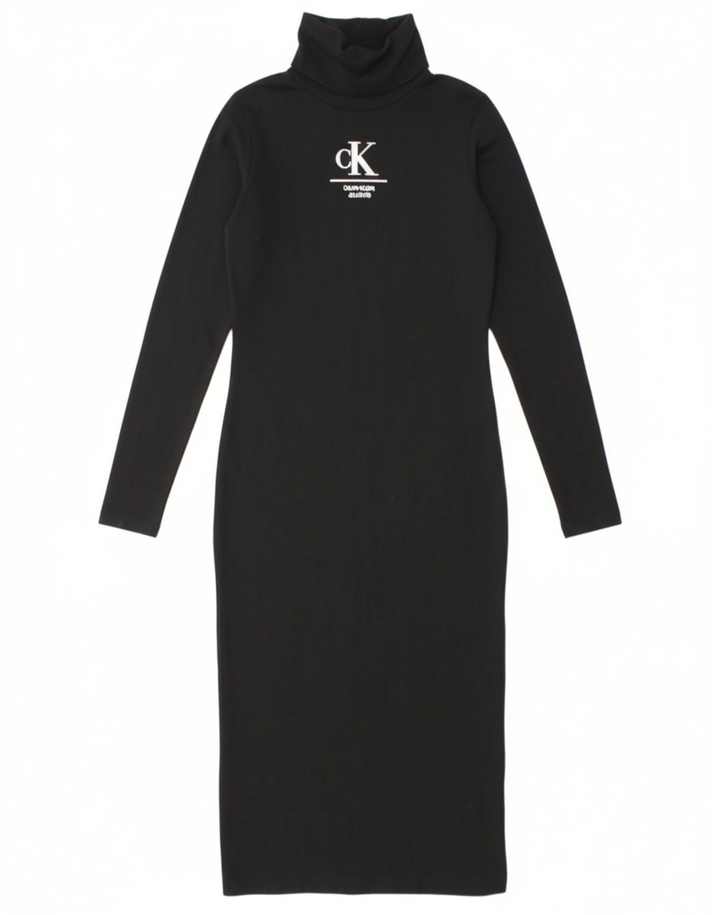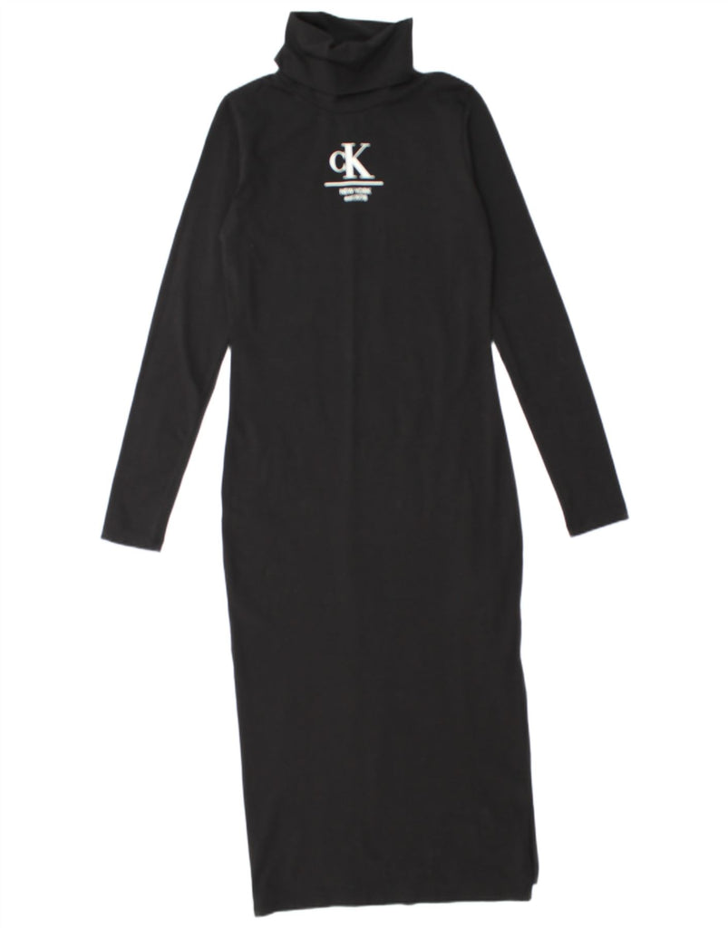 CALVIN KLEIN JEANS Womens Graphic Maxi Bodycon Dress UK 12 Medium Black
