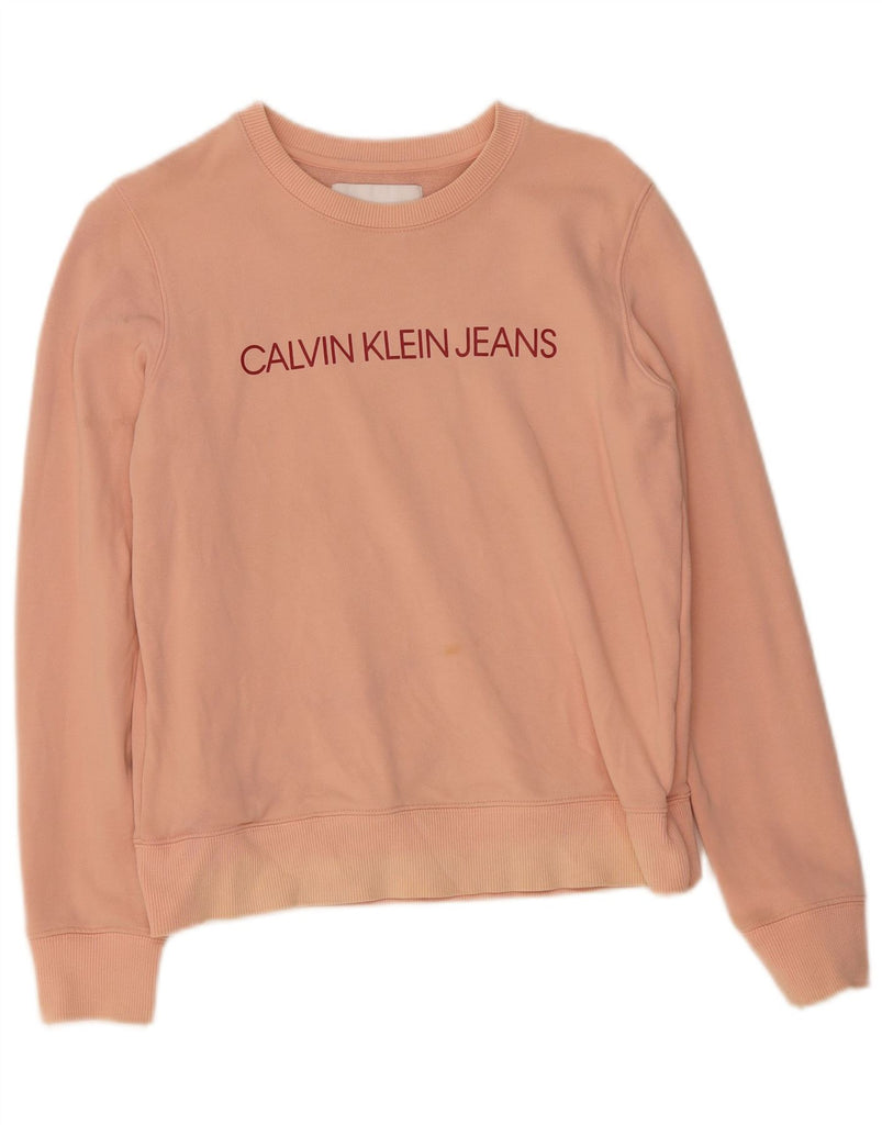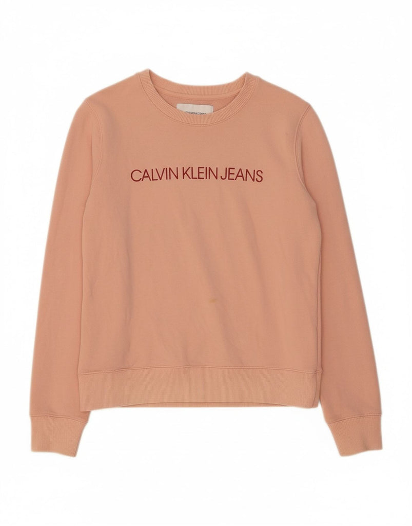 CALVIN KLEIN JEANS Womens Graphic Sweatshirt Jumper UK 10 Small Pink