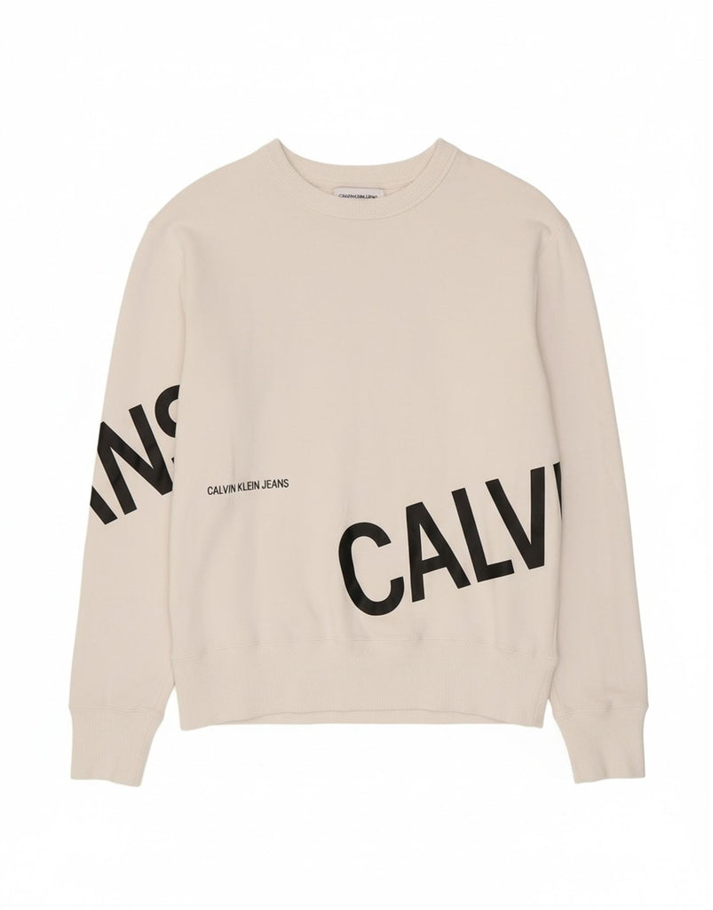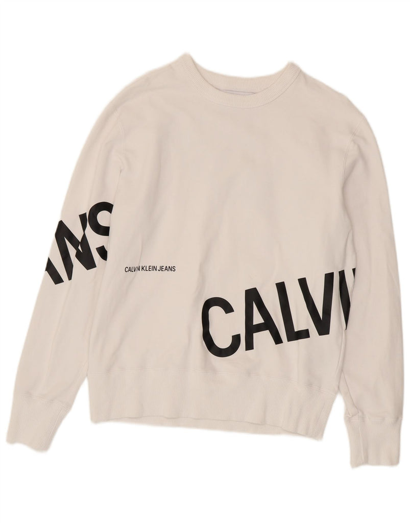 CALVIN KLEIN JEANS Womens Graphic Sweatshirt Jumper UK 10 Small White Logo