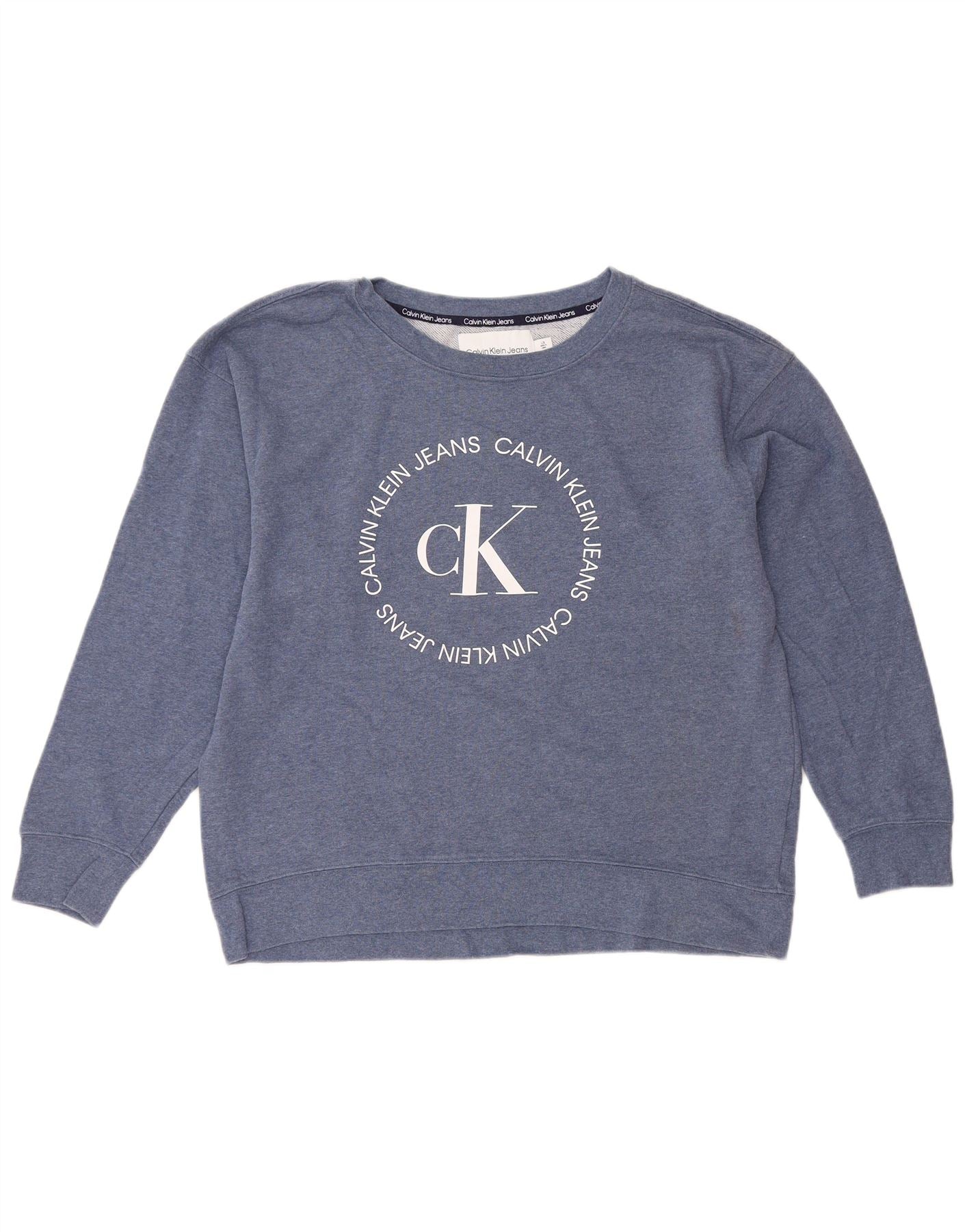 CALVIN KLEIN JEANS Womens Graphic Sweatshirt Jumper UK 16 Large Blue