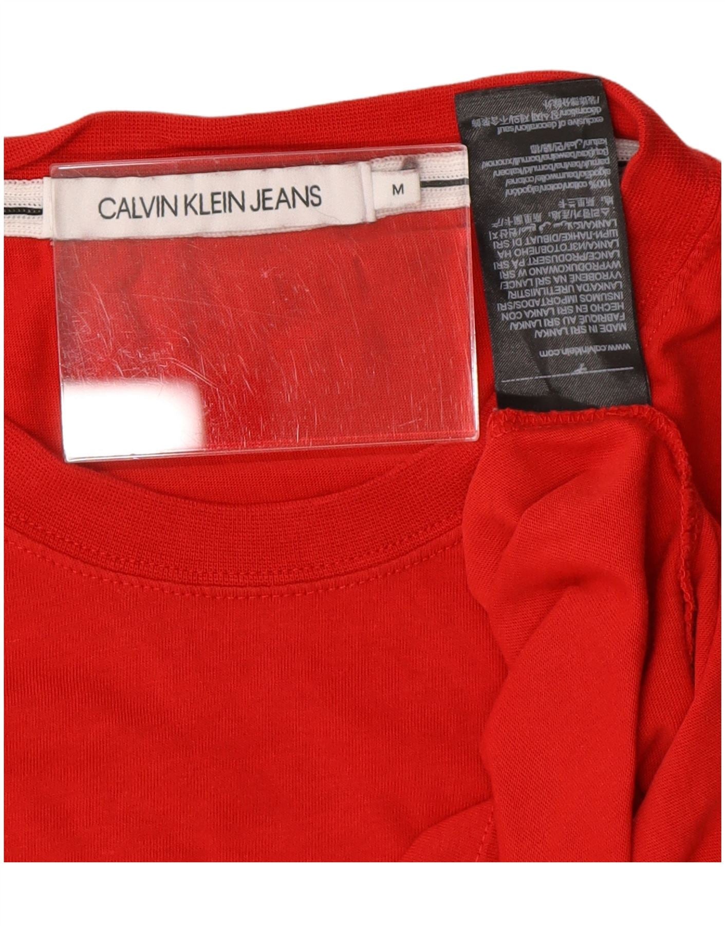 CALVIN KLEIN JEANS Womens Graphic T-Shirt Top UK 14 Medium Red Cotton