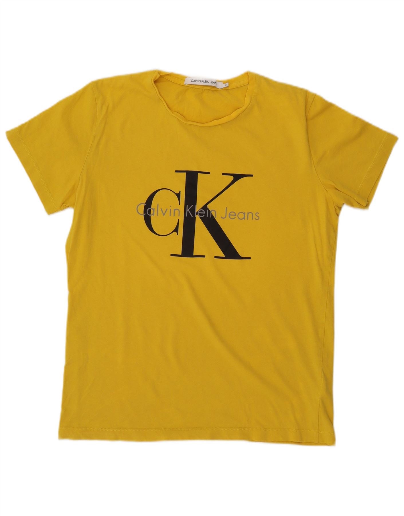 CALVIN KLEIN JEANS Womens Graphic T-Shirt Top UK 18 XL Yellow Cotton