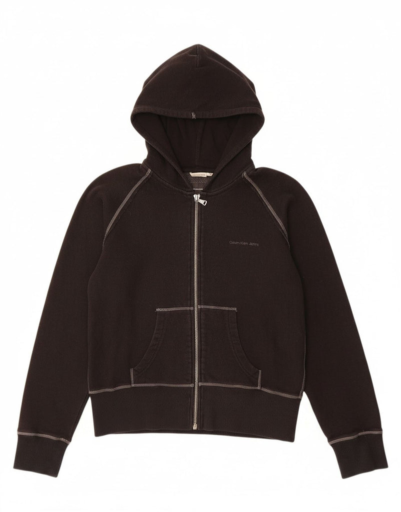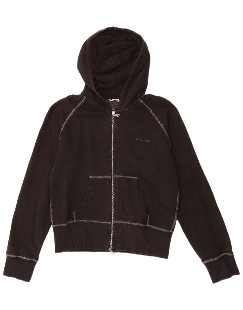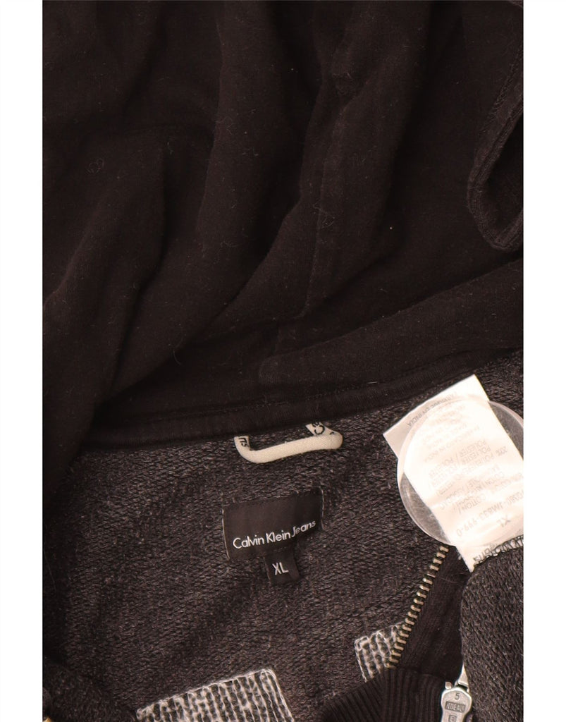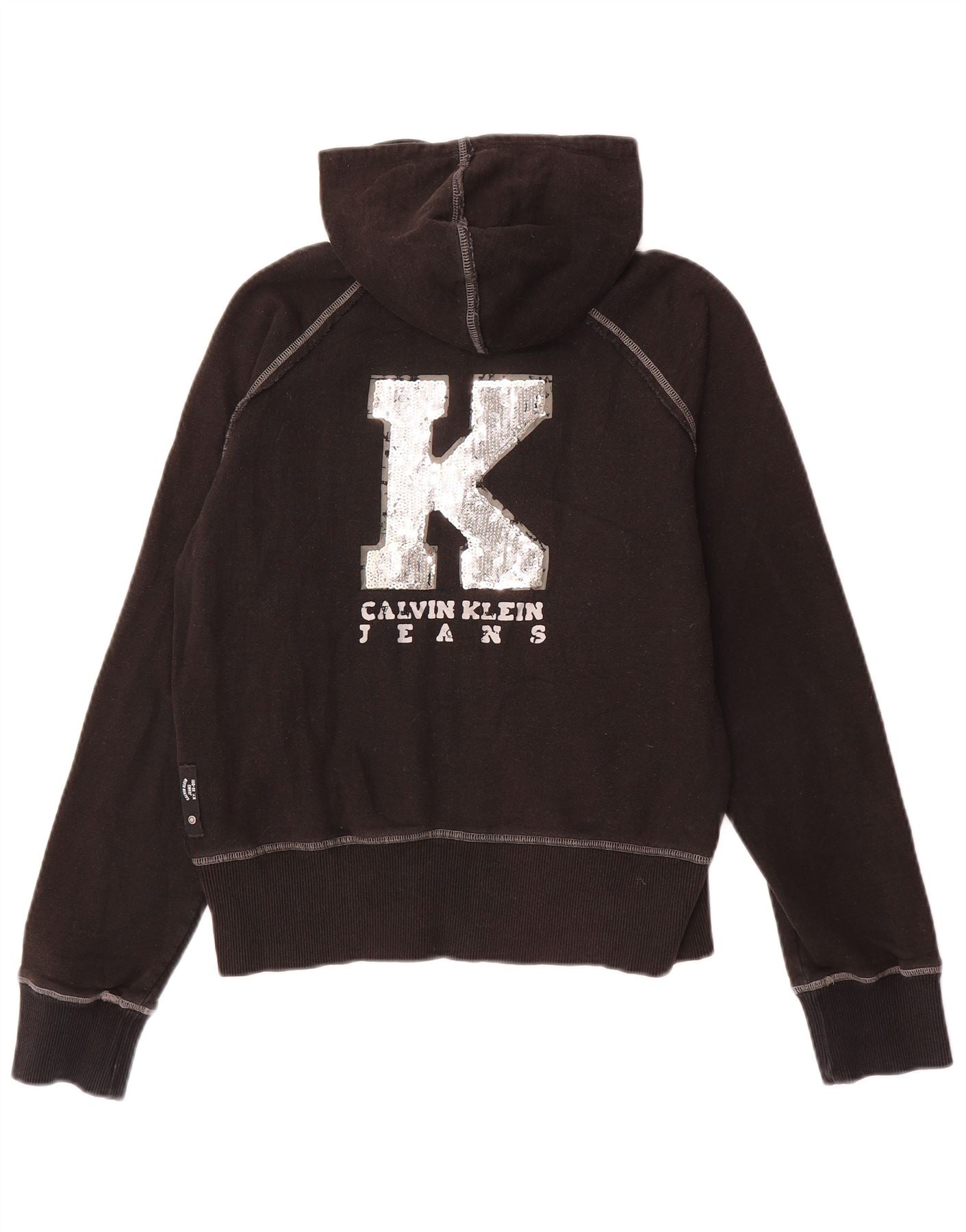 CALVIN KLEIN JEANS Womens Graphic Zip Hoodie Sweater UK 18 XL Black Cotton
