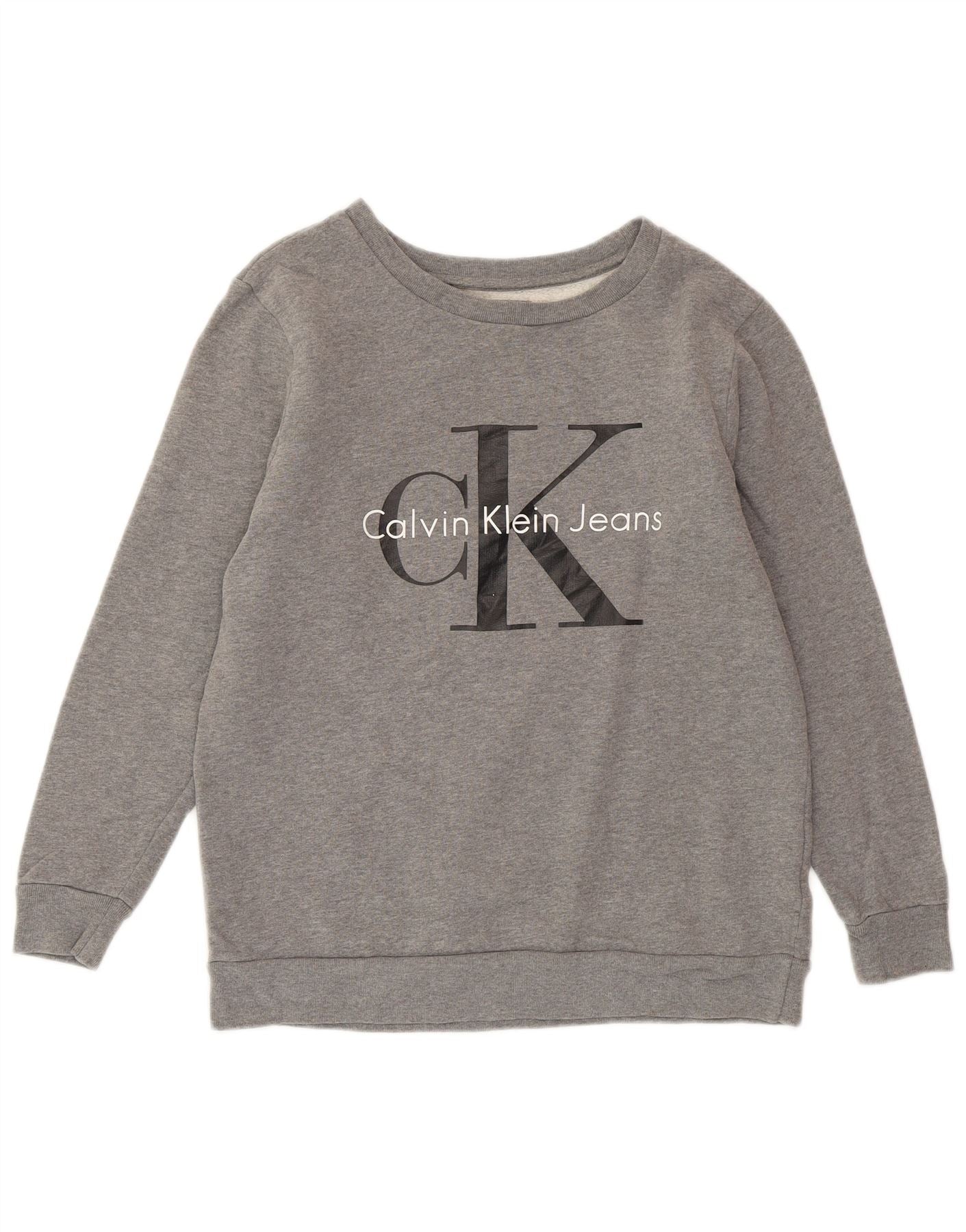 CALVIN KLEIN JEANS Womens Oversized Sweatshirt Jumper UK 6 XS Grey Flecked