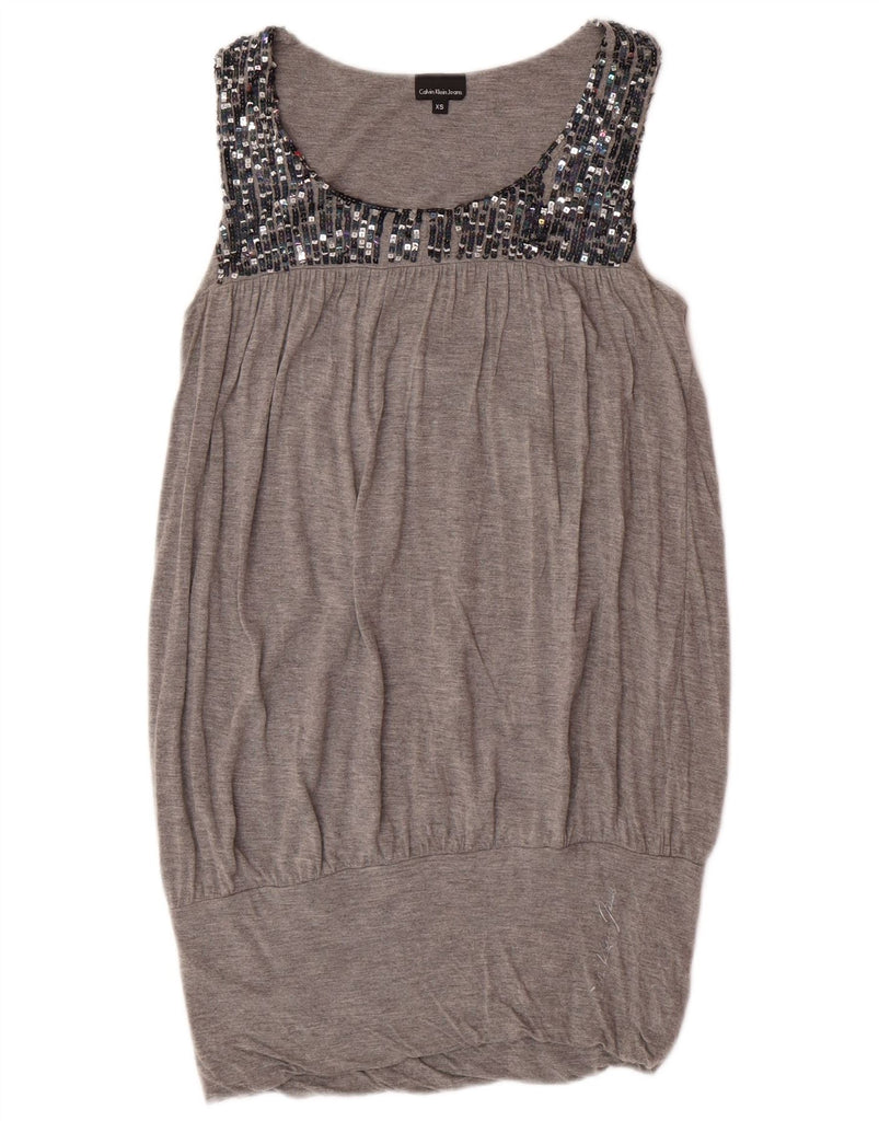 CALVIN KLEIN JEANS Womens Sleeveless Bubble Dress UK 6 XS Grey Viscose