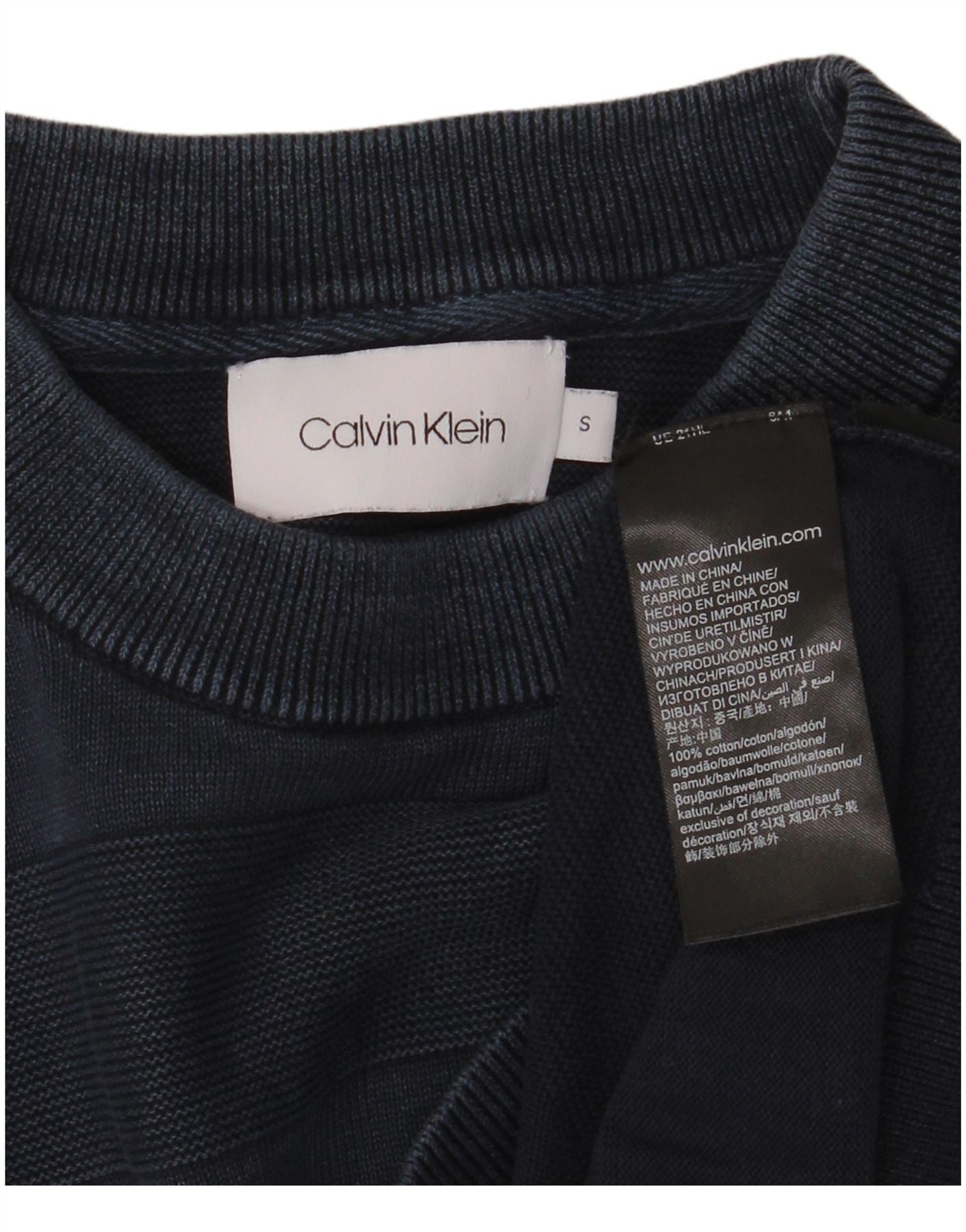 CALVIN KLEIN Mens Crew Neck Jumper Sweater Small Navy Blue Striped Cotton
