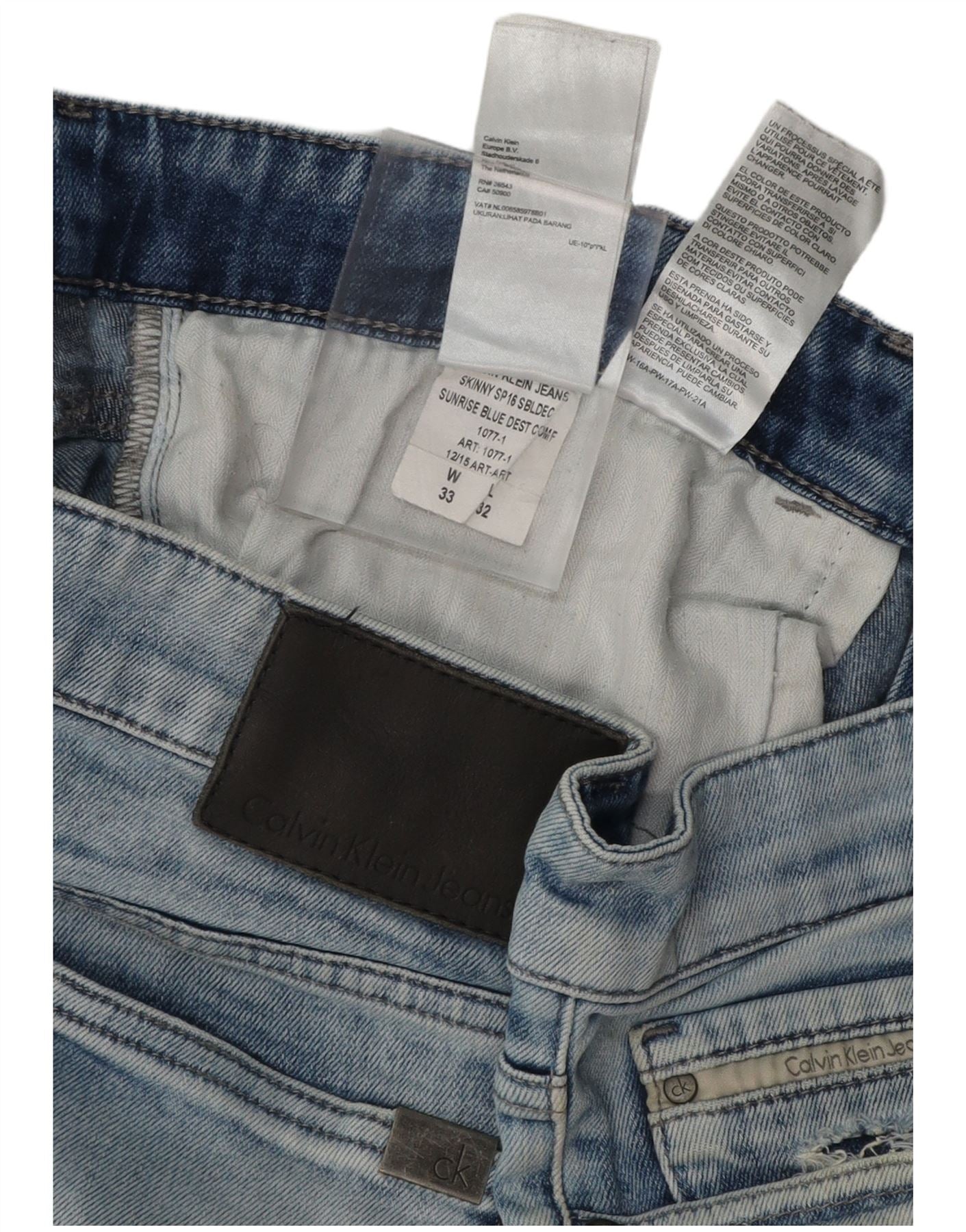CALVIN KLEIN Mens Distressed Skinny Jeans 33 L32 Blue Cotton