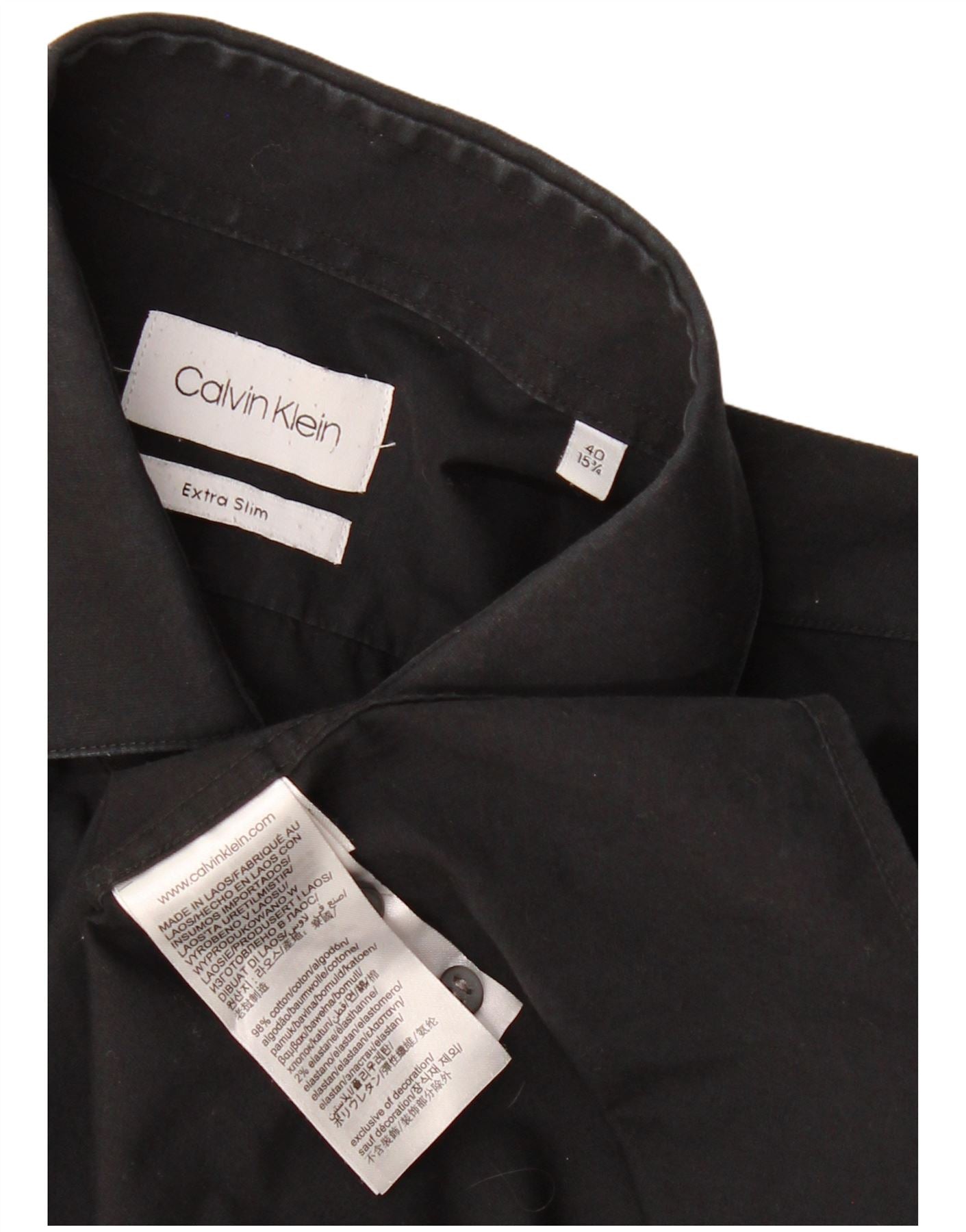 CALVIN KLEIN Mens Extra Slim Fit Shirt Size 40 15 3/4 Medium Black Cotton