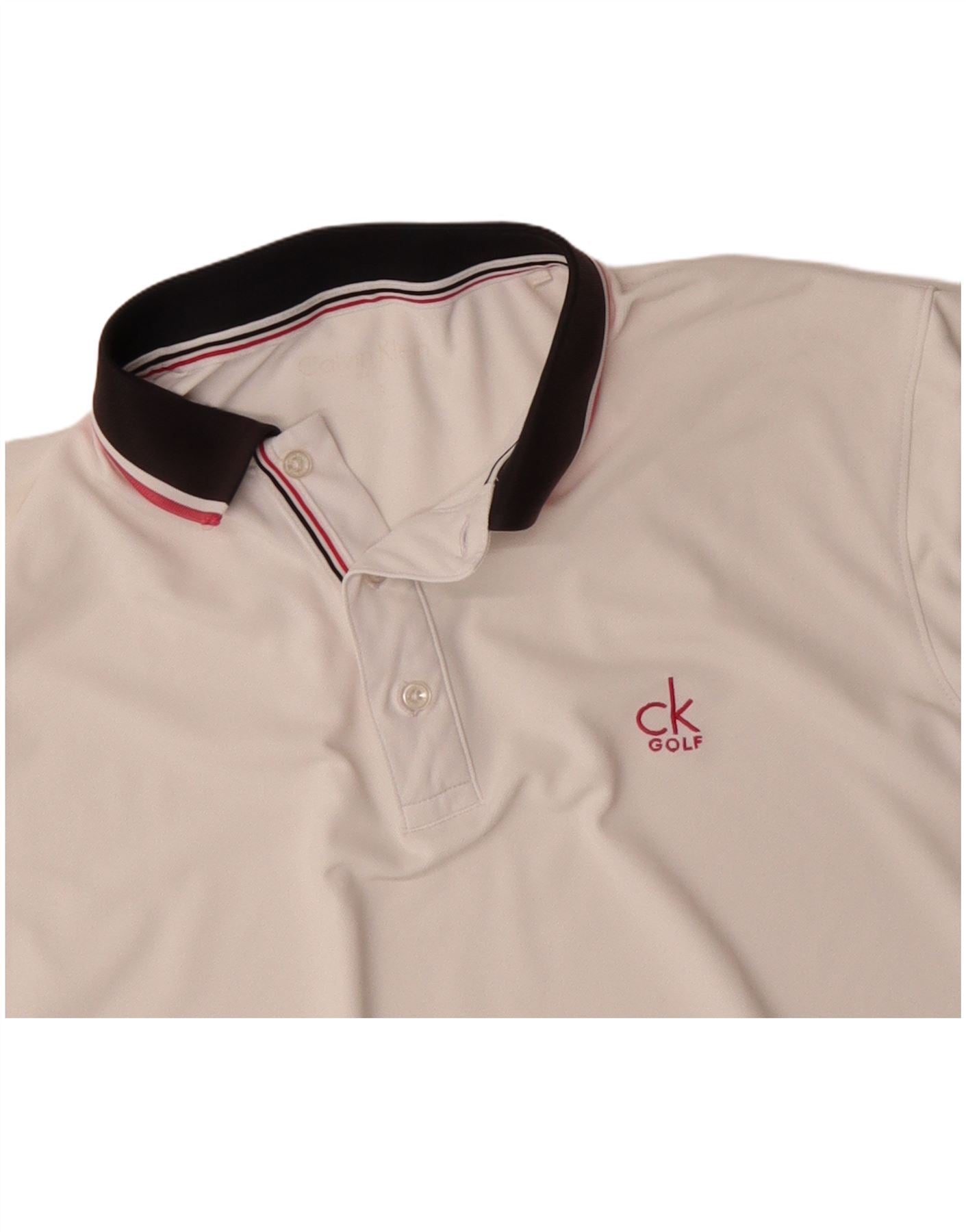 CALVIN KLEIN Mens Golf Polo Shirt Large White Colourblock Polyester