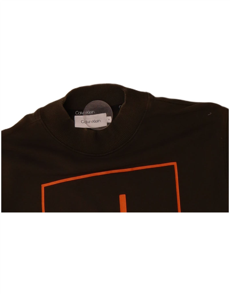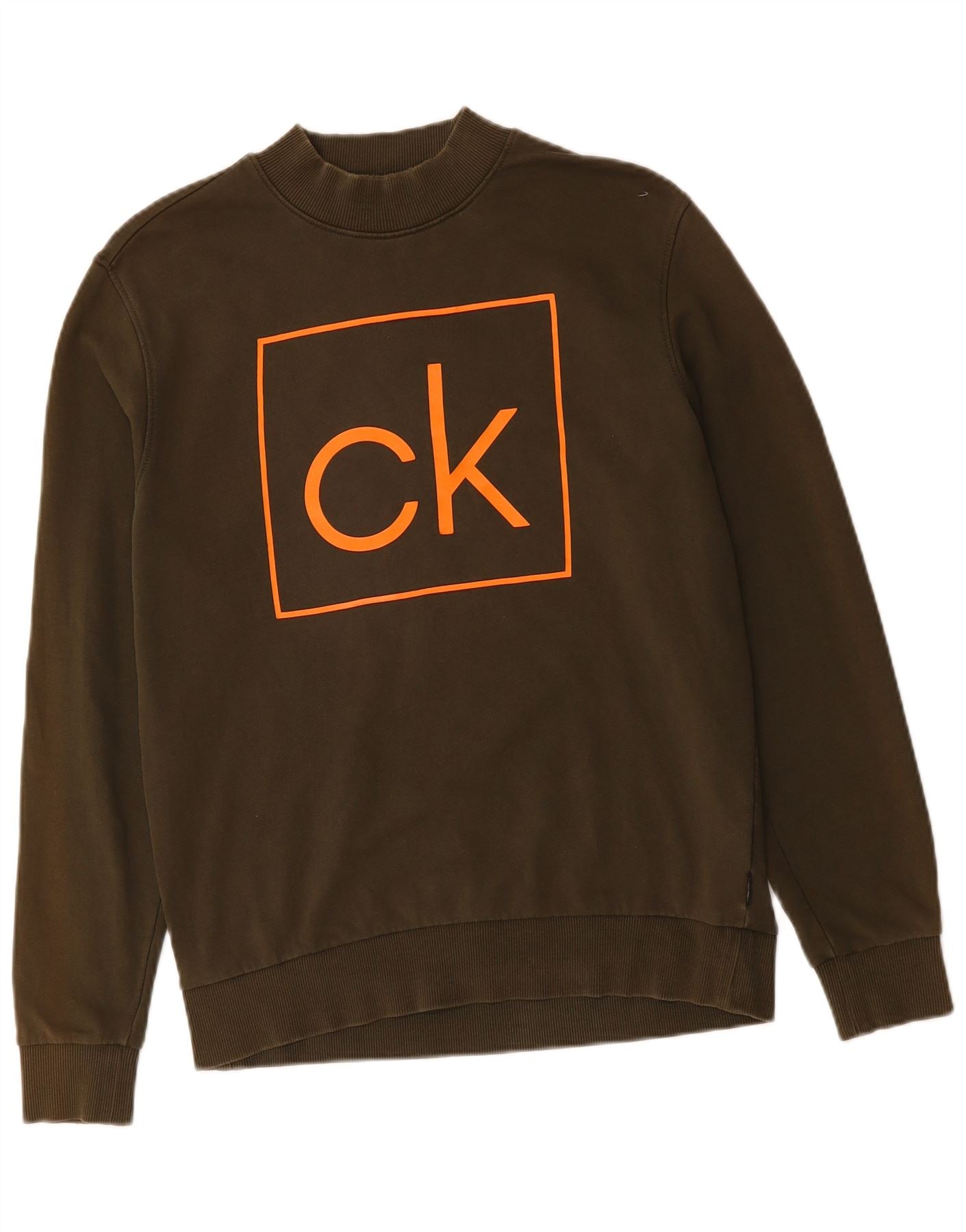 CALVIN KLEIN Mens Graphic Sweatshirt Jumper Medium Khaki Cotton