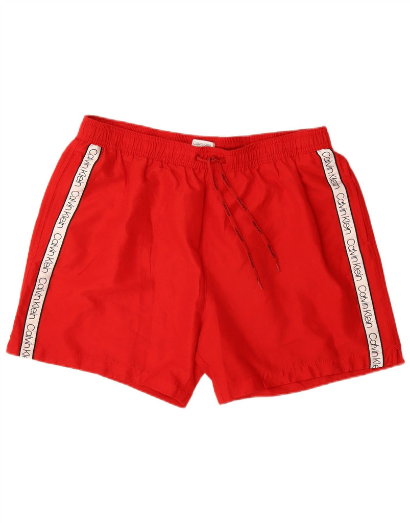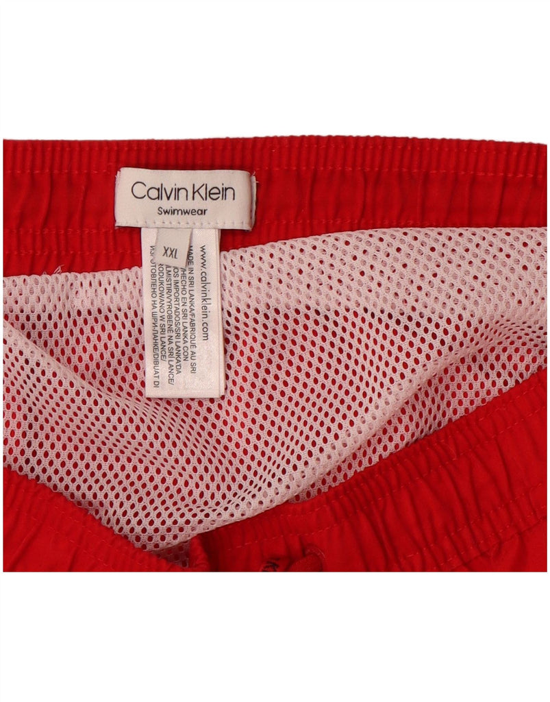 CALVIN KLEIN Mens Graphic Swimming Shorts 2XL Red Colourblock Polyester