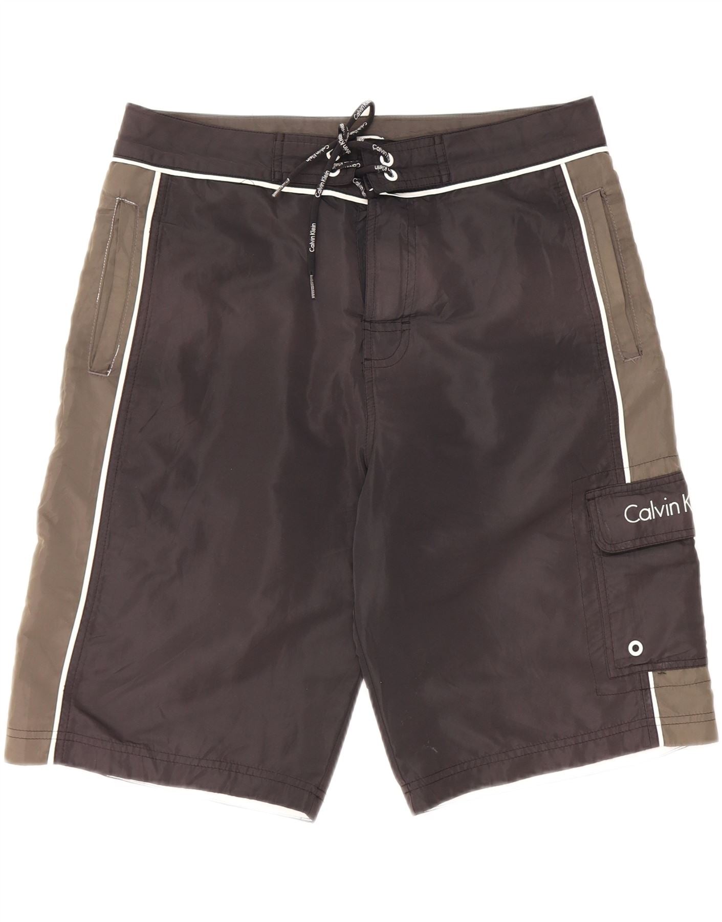 CALVIN KLEIN Mens Graphic Swimming Shorts Medium Black Colourblock