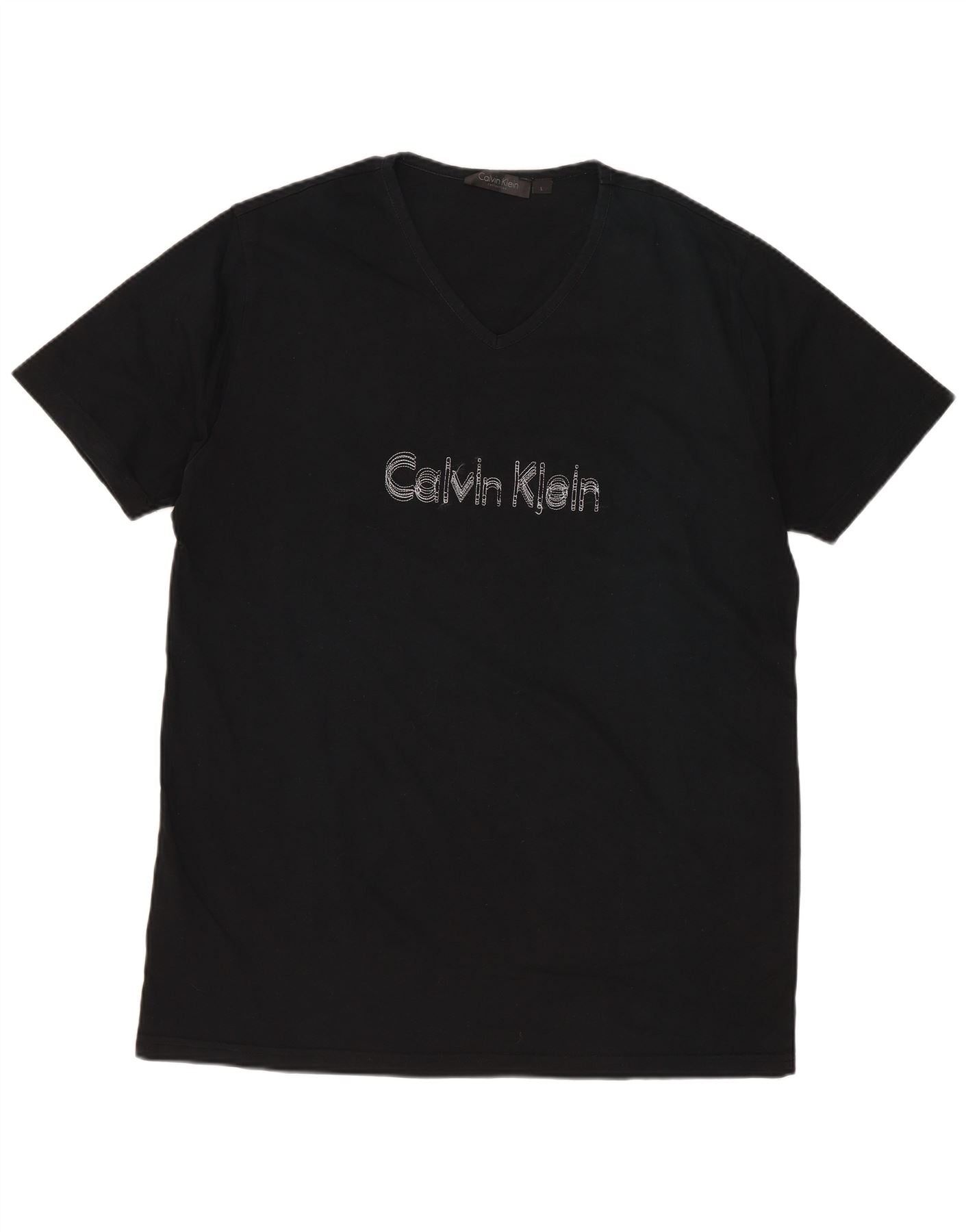 CALVIN KLEIN Mens Graphic T-Shirt Top Large Black Cotton