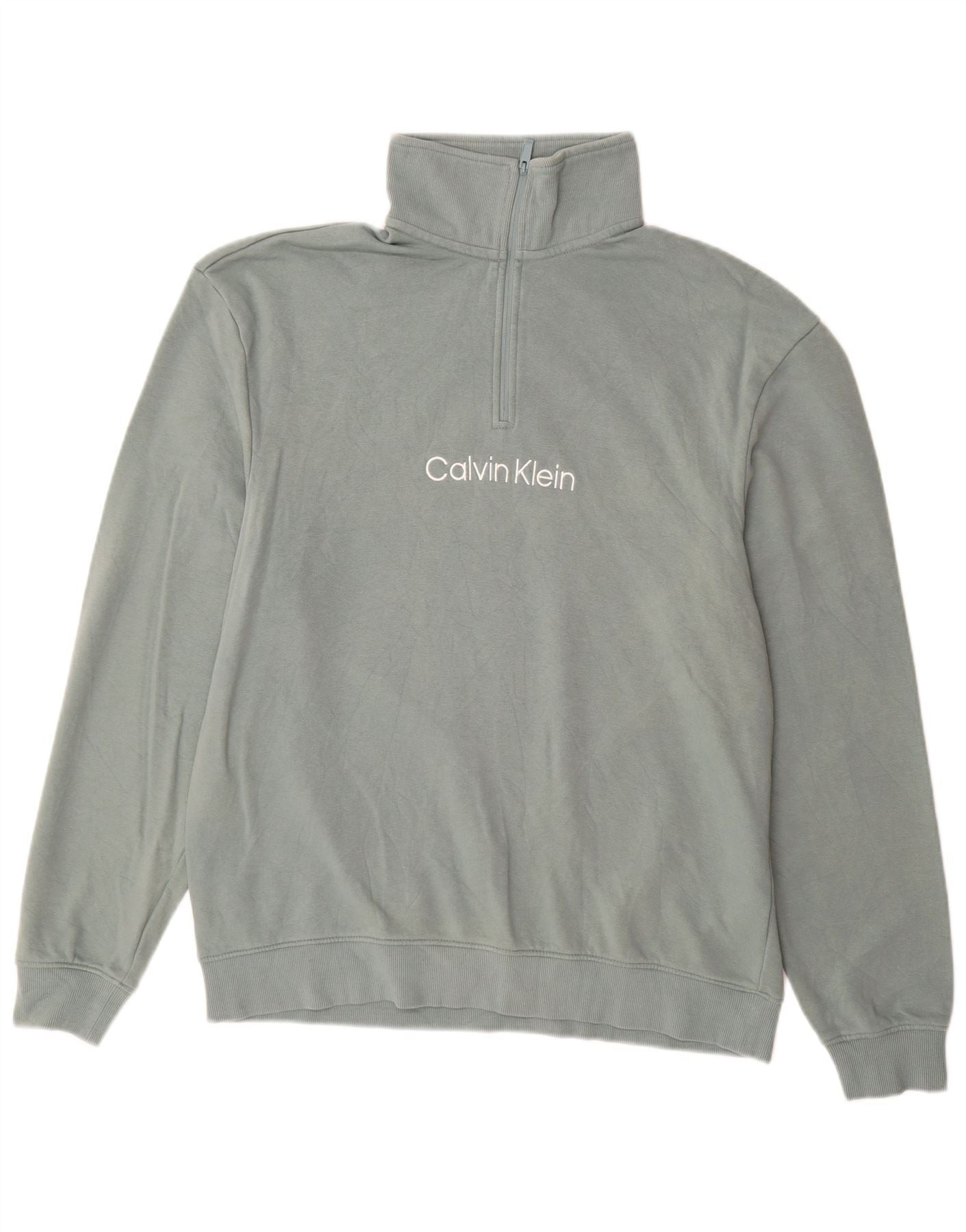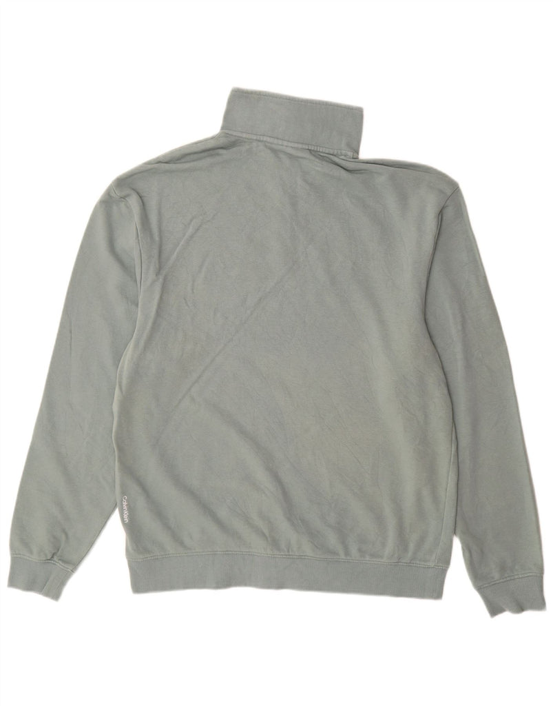 CALVIN KLEIN Mens Graphic Zip Neck Sweatshirt Jumper Large Green Cotton