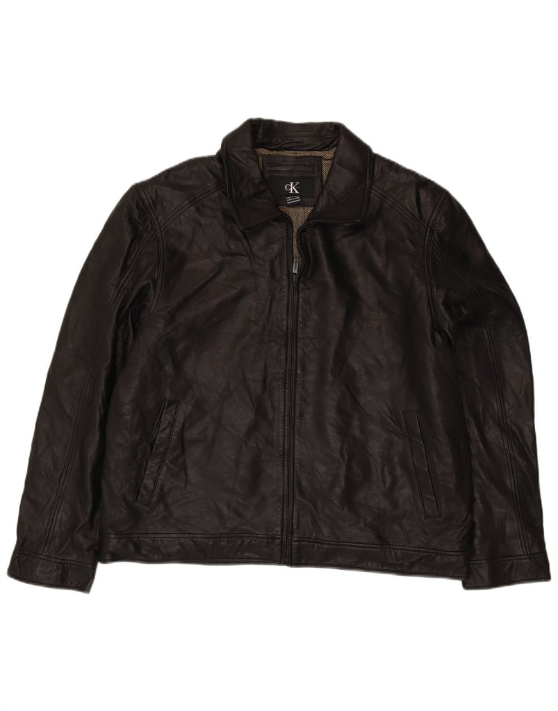 CALVIN KLEIN Mens Leather Jacket UK 42 XL Black Leather
