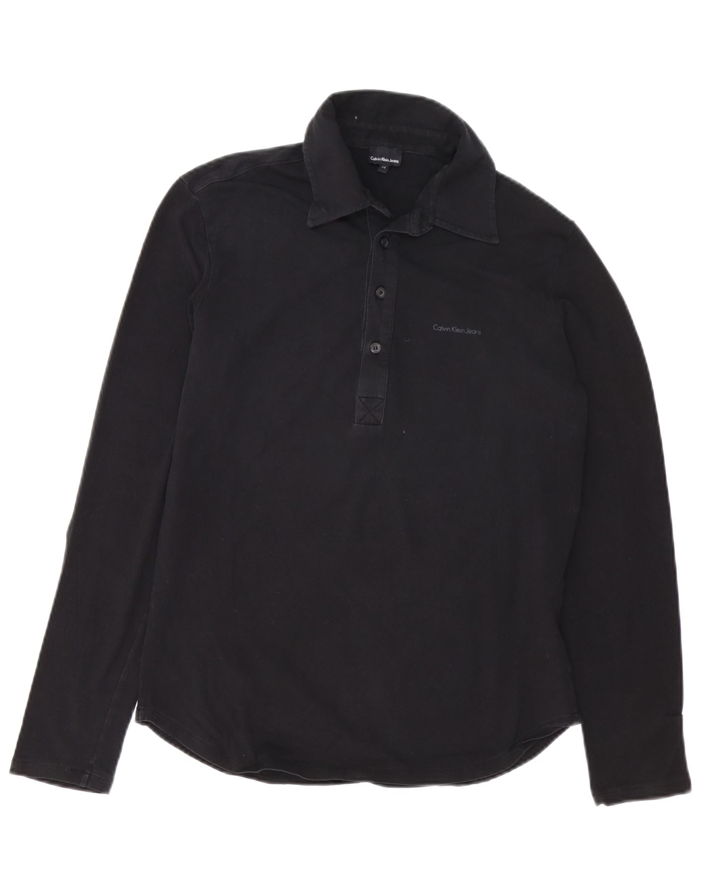 CALVIN KLEIN Mens Long Sleeve Polo Shirt Medium Black Cotton