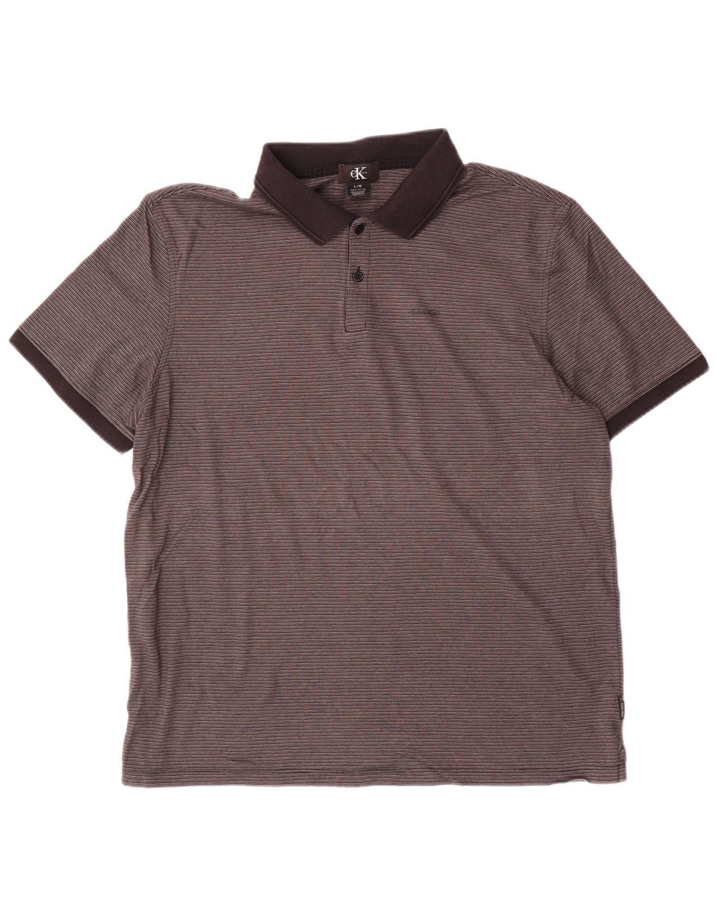CALVIN KLEIN Mens Polo Shirt Large Grey Pinstripe Cotton