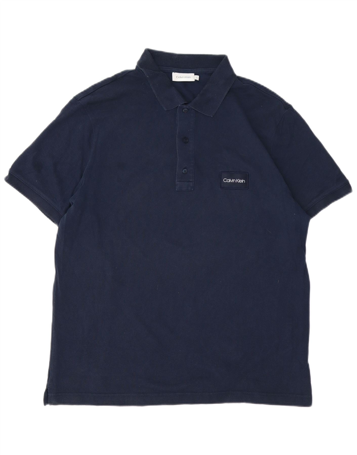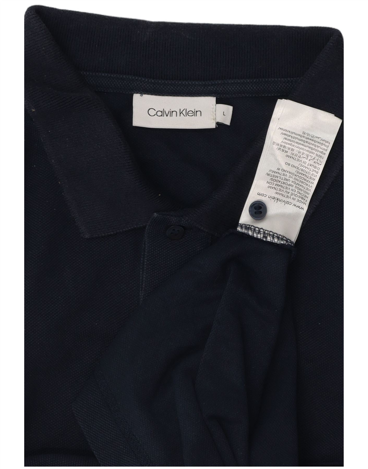 CALVIN KLEIN Mens Polo Shirt Large Navy Blue Cotton